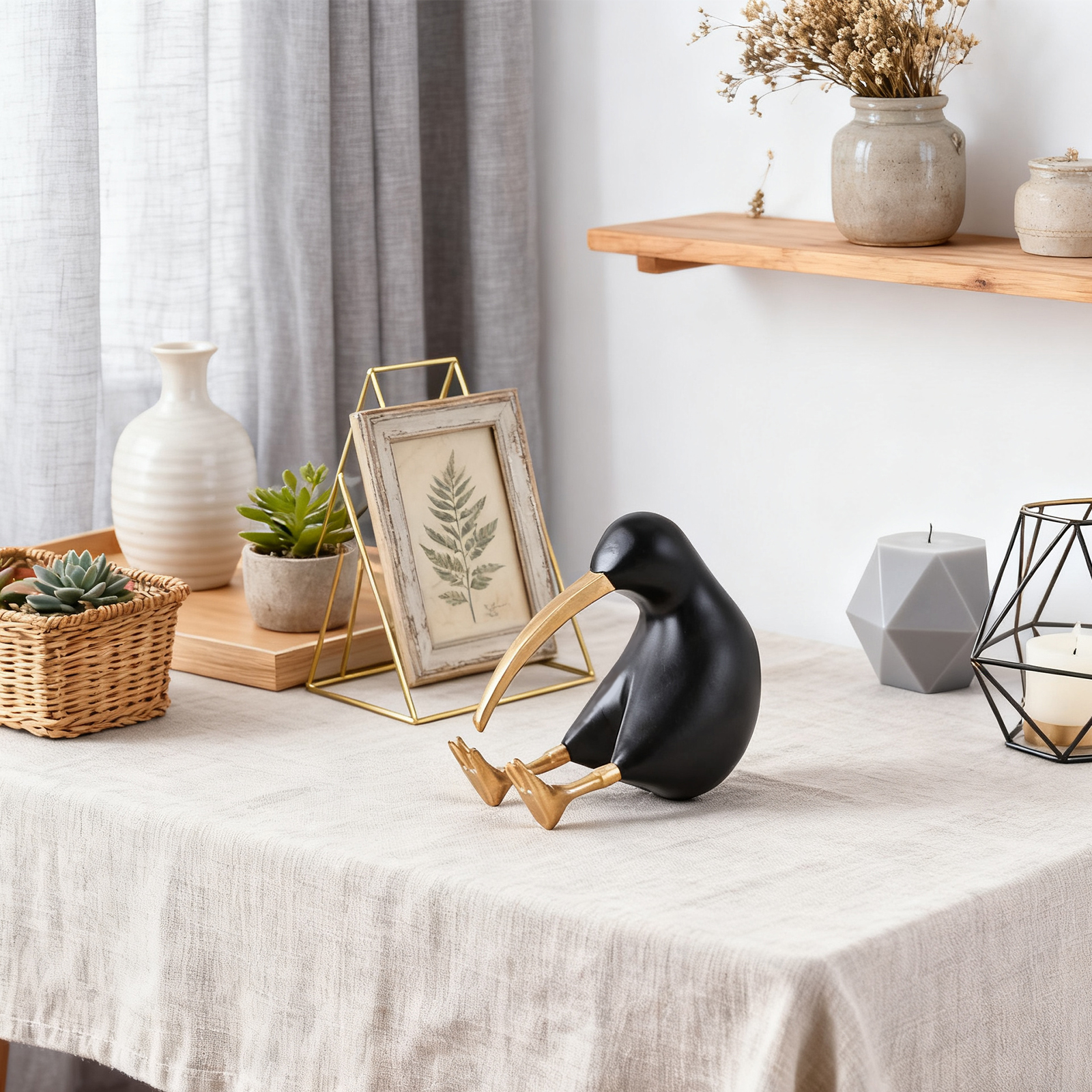 Black Kiwi Wood Bird Decor Items