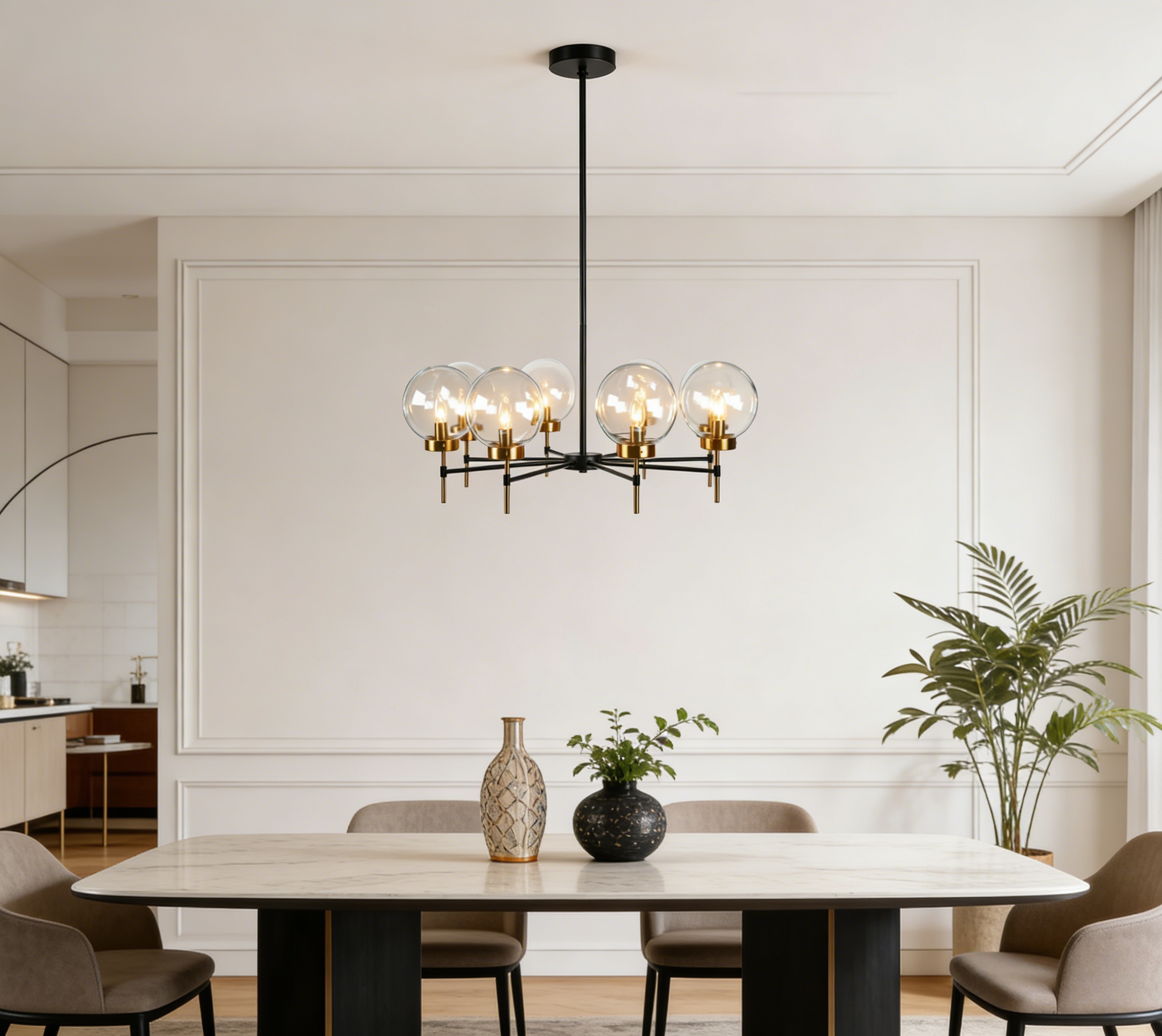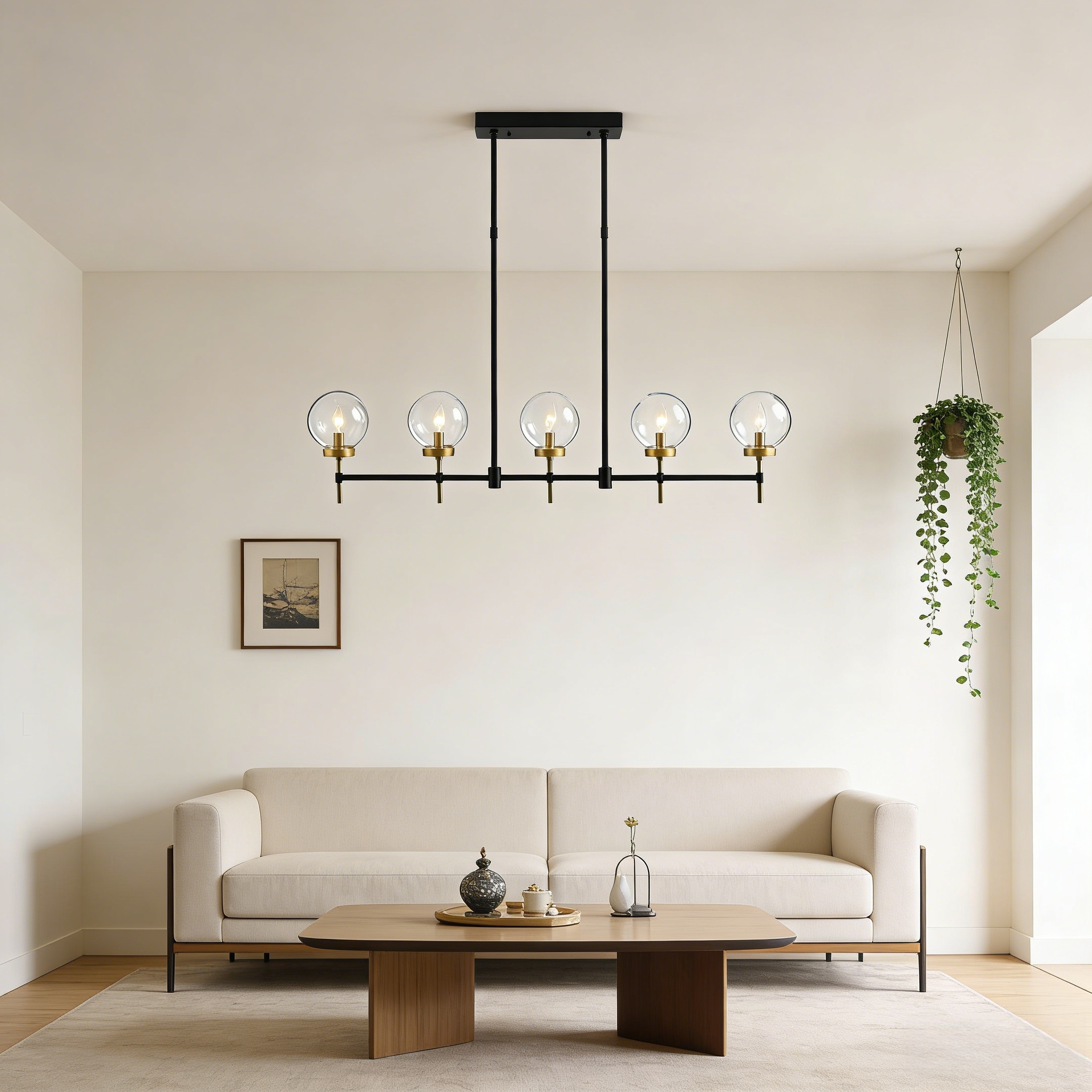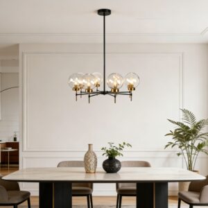 Black& Gold Modern Industrial Glass Globe Linear Chandelier