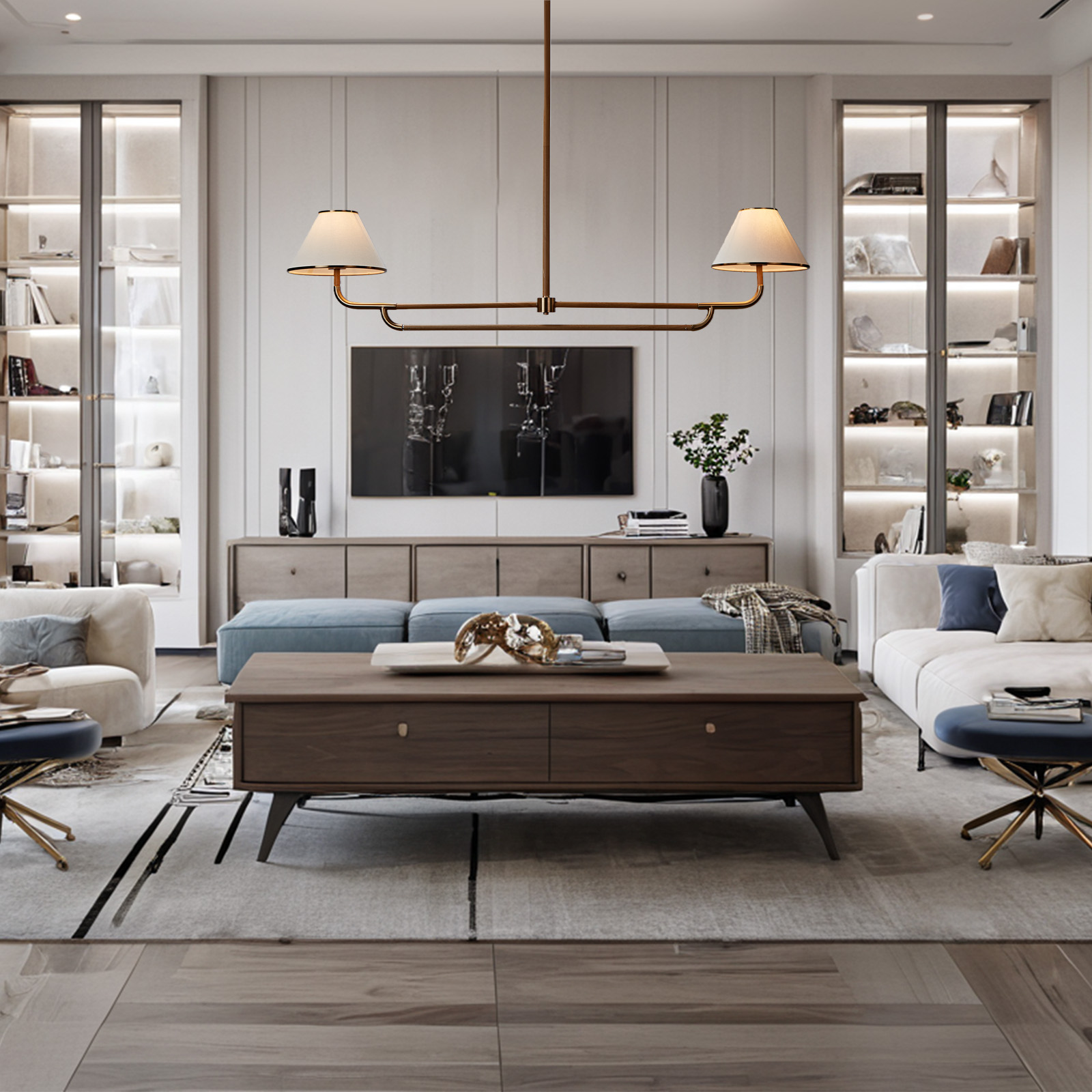 $289.00 – $299.00Modern 2-Light White Linen Shades Linear Chandelier