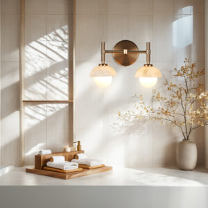$129.00Original price was: $129.00.$89.00Current price is: $89.00.Alabaster Double Wall Sconce, Brushed Brass Double Vanity Light