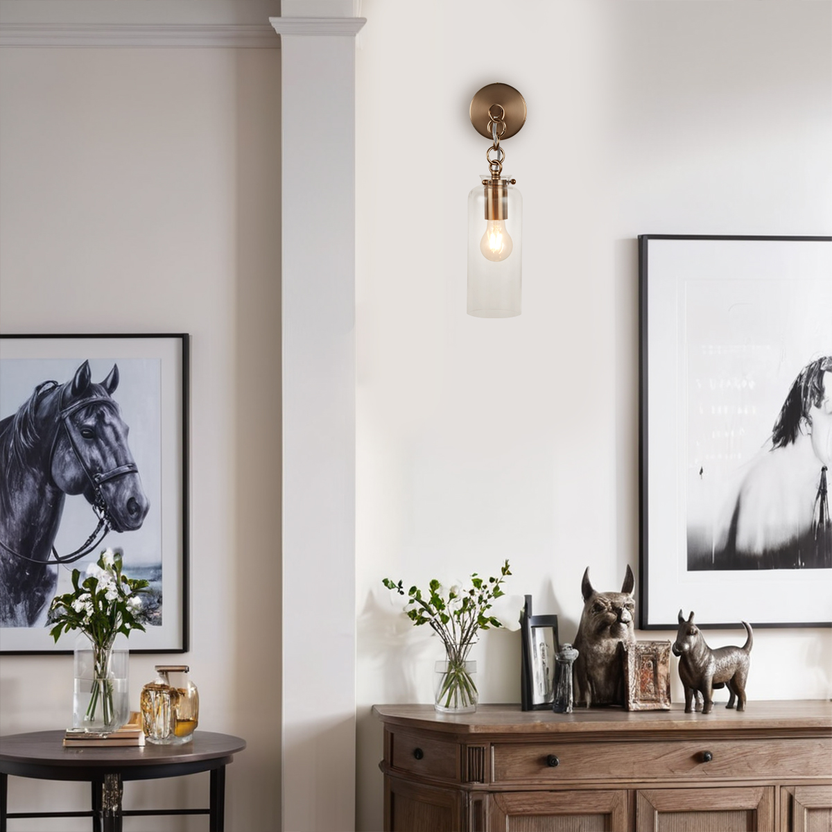Aged Brass Clear Glass Tube Wall Sconce Lamp