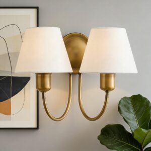 $59.99Original price was: $59.99.$49.00Current price is: $49.00.Vintage Holmes Linen Shade Brass Iron Wall Sconce