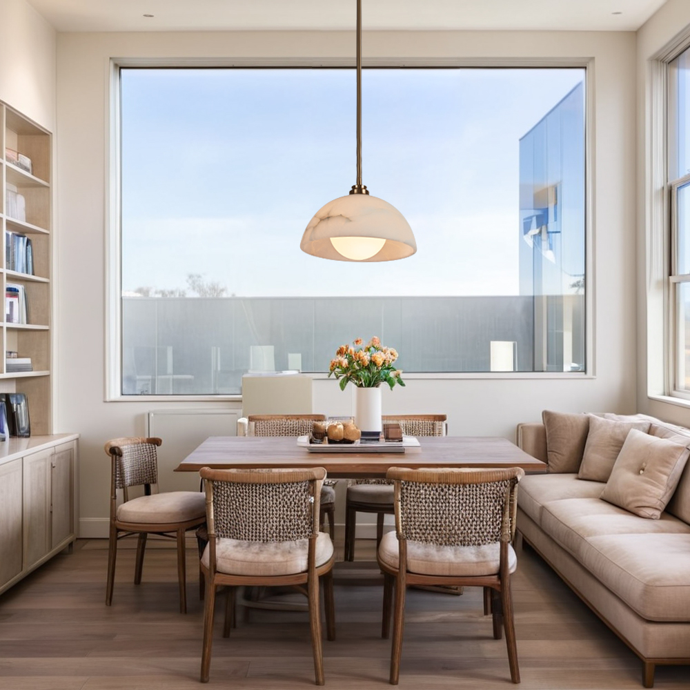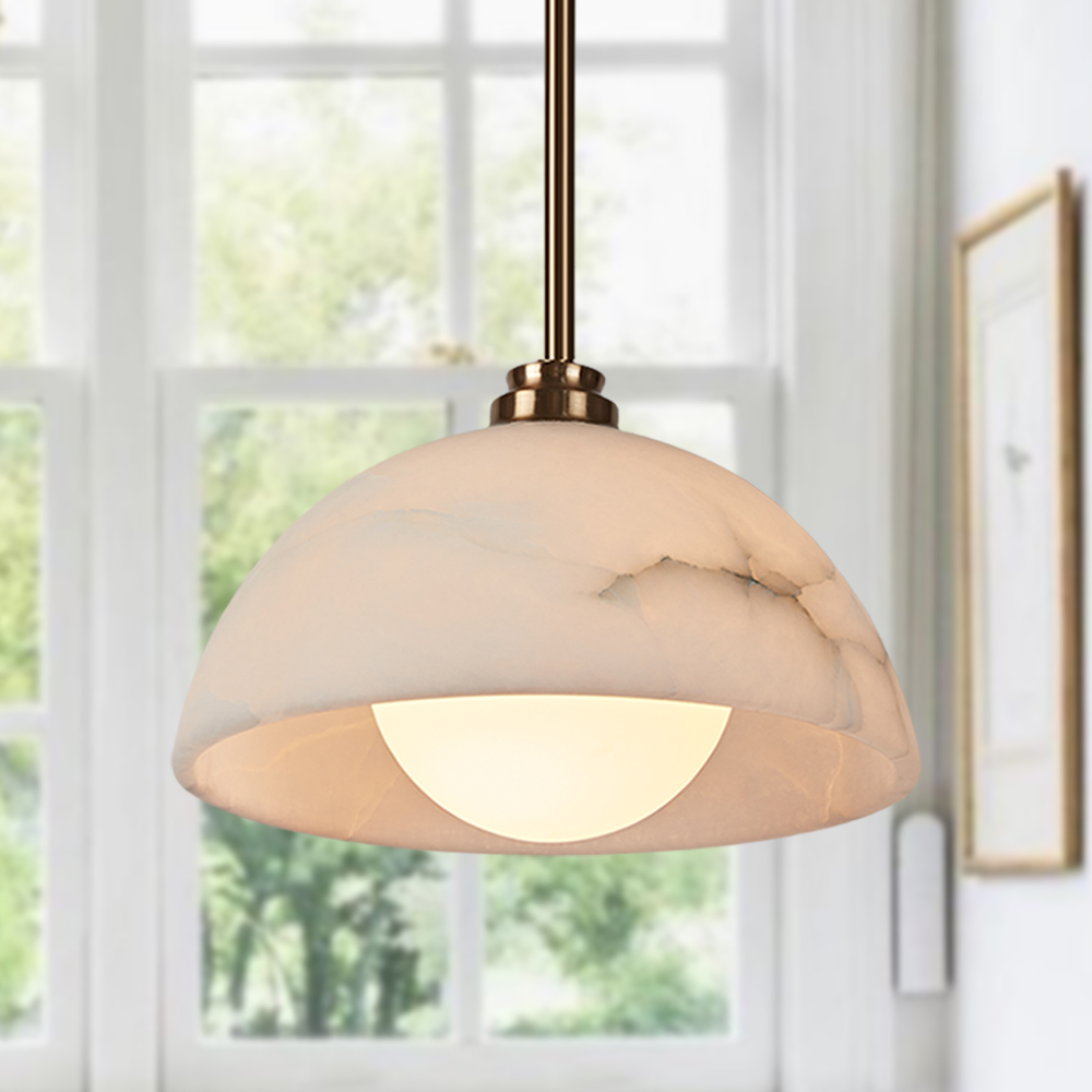 Transform your personal sanctuary with the exquisite hanging lights from our collection. The alabaster shade radiates natural elegance, casting a soft glow that creates the perfect mood for relaxation. With its earthy yet sophisticated design, this pendant light will add a touch of refinement to your space.
