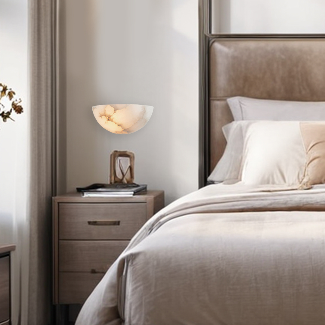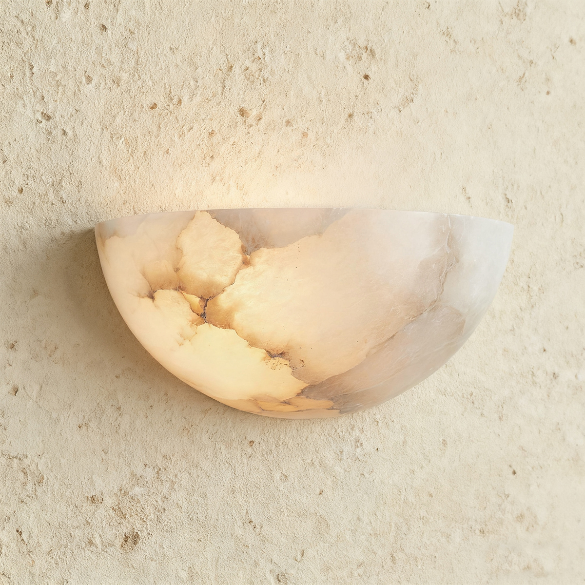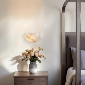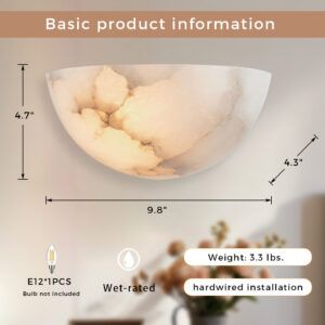 • Each sconce is crafted from 100% natural alabaster stone, ensuring that every piece is one-of-a-kind with unique variations that add character and charm.