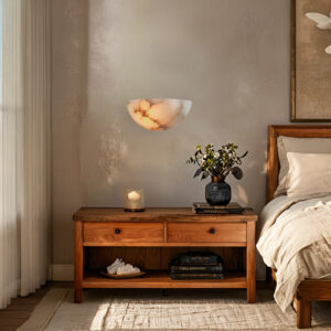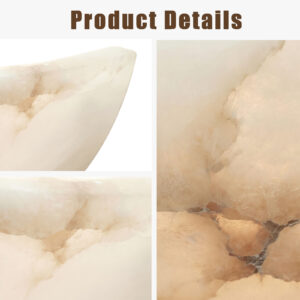 • Crafted from natural alabaster, each alabaster Sconce showcases a unique design that brings a touch of earthy elegance to any room.  The soft, warm glow it emits creates a cozy atmosphere, making it ideal for relaxing evenings or entertaining guests.