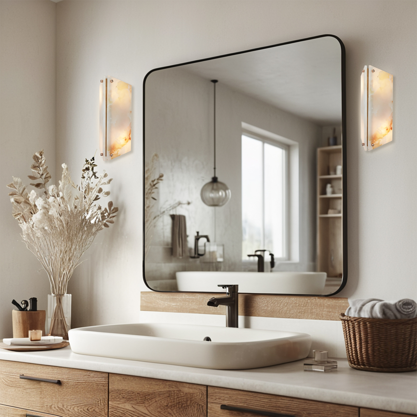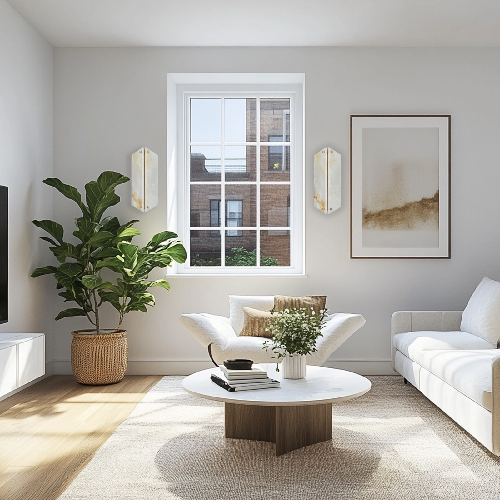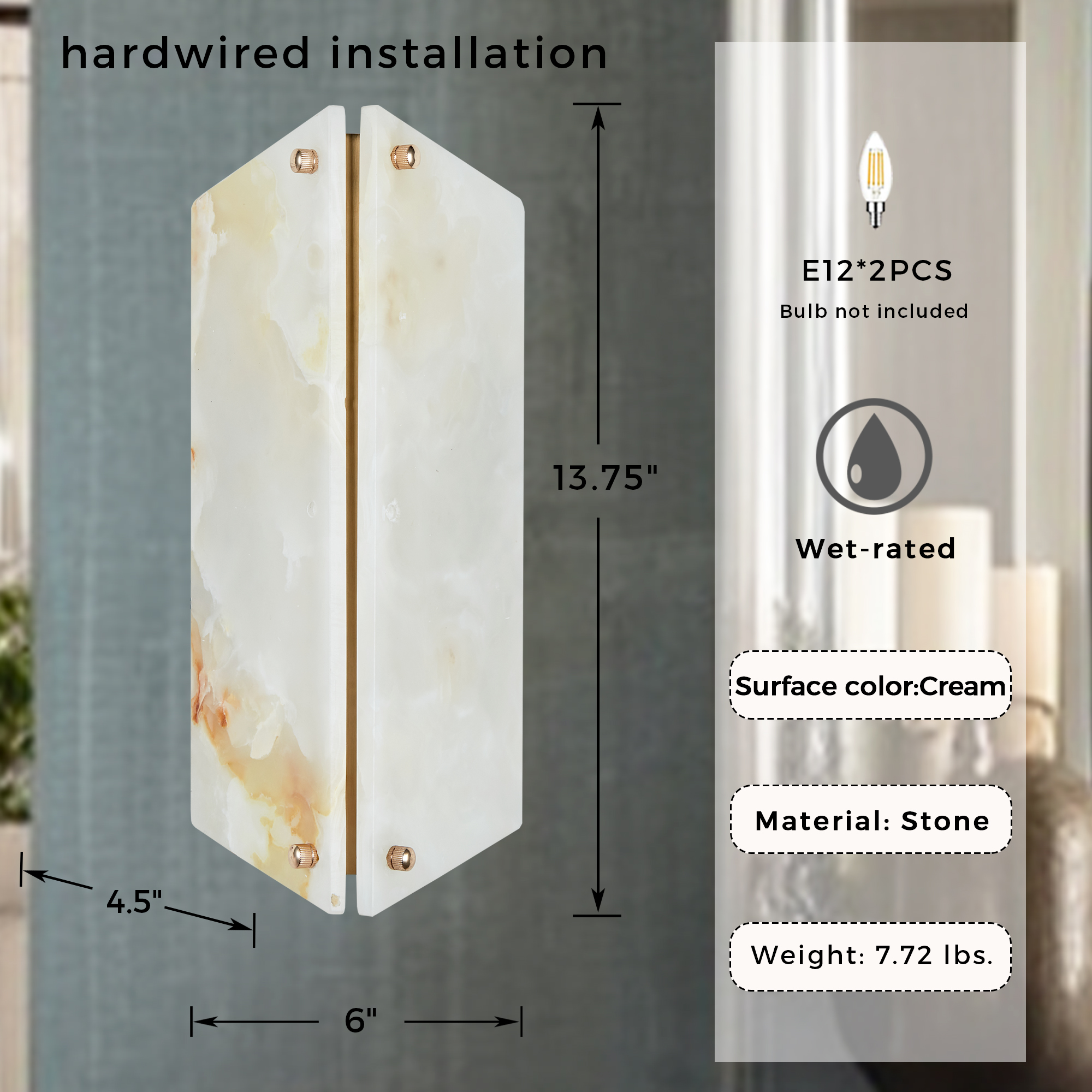 - Unique: Each sconce is unique due to the natural cream onyx material used, ensuring no two pieces are exactly alike.