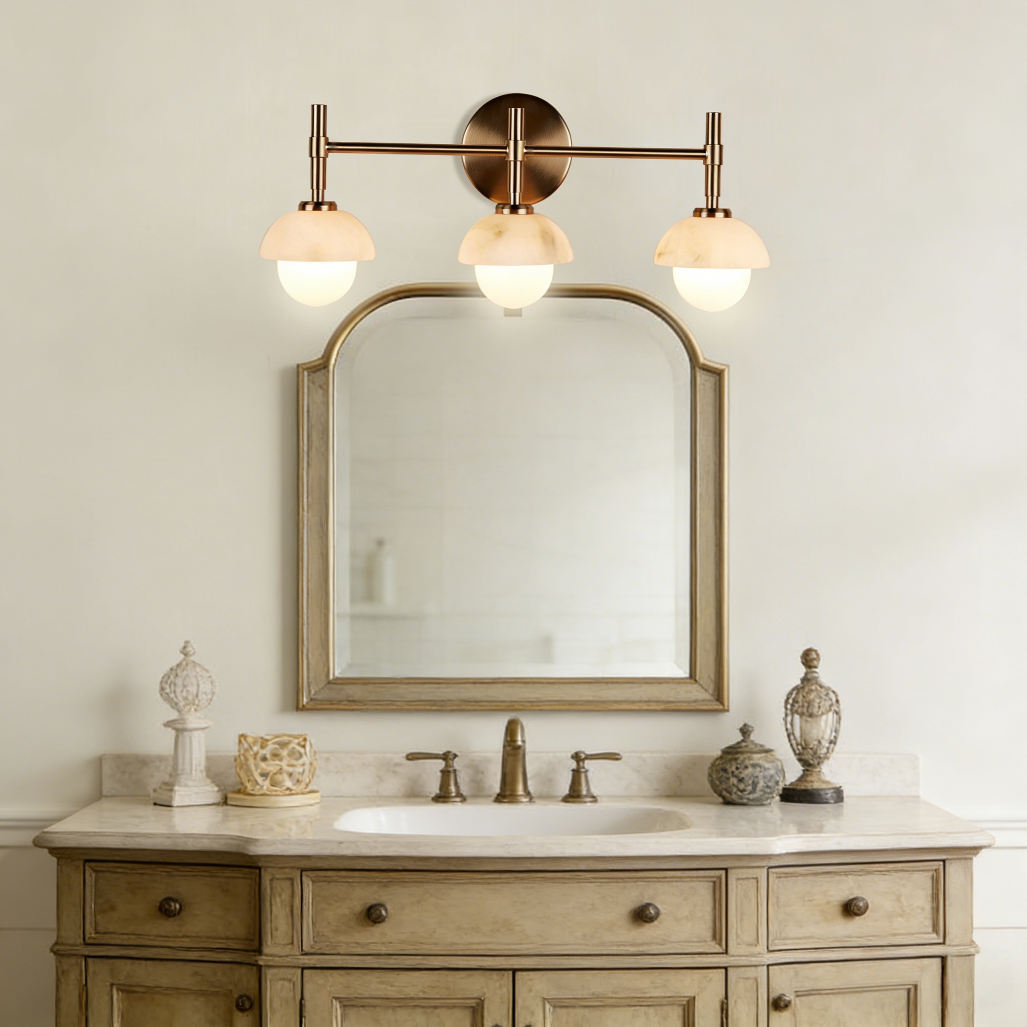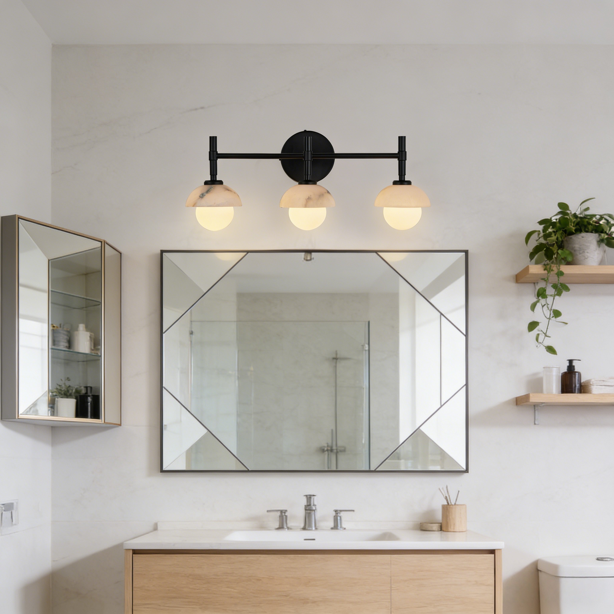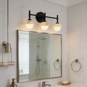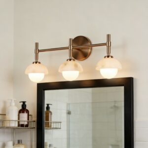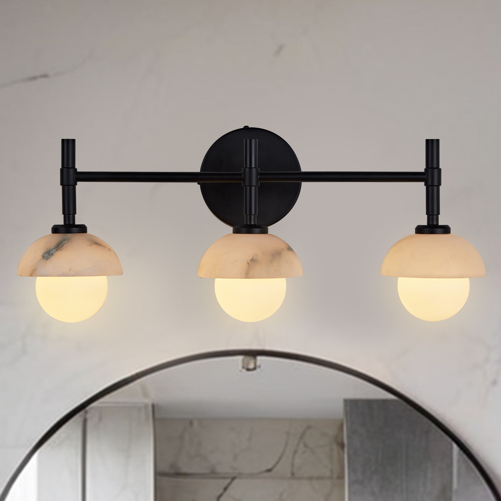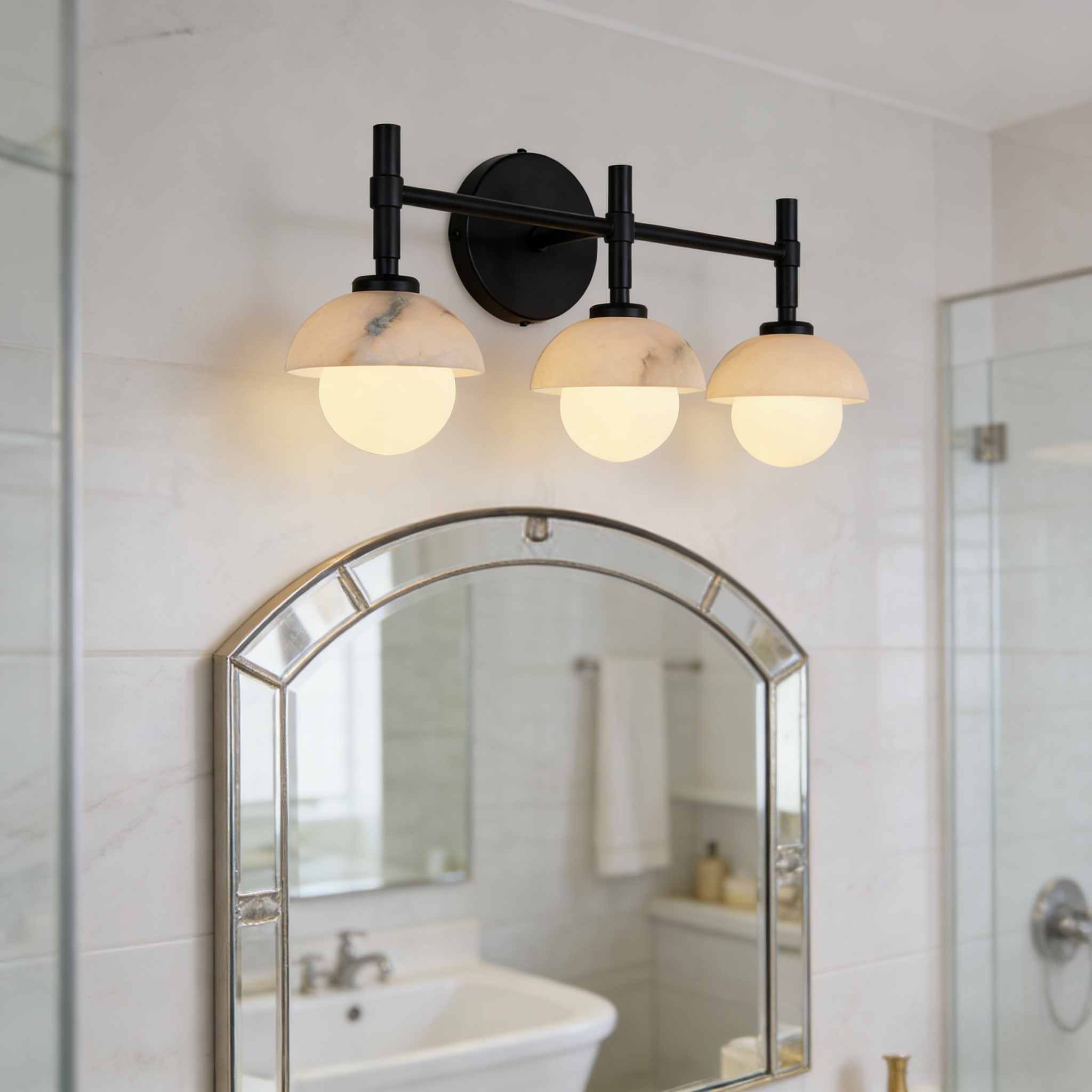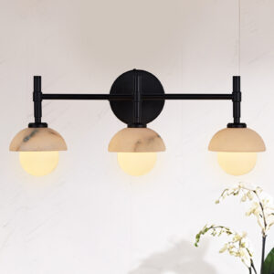 - Enhance your bathroom decor with the exquisite Modern Alabaster Glass Shades Rounded Triple Sconce, a versatile vanity wall lamp that elevates your space with elegance.