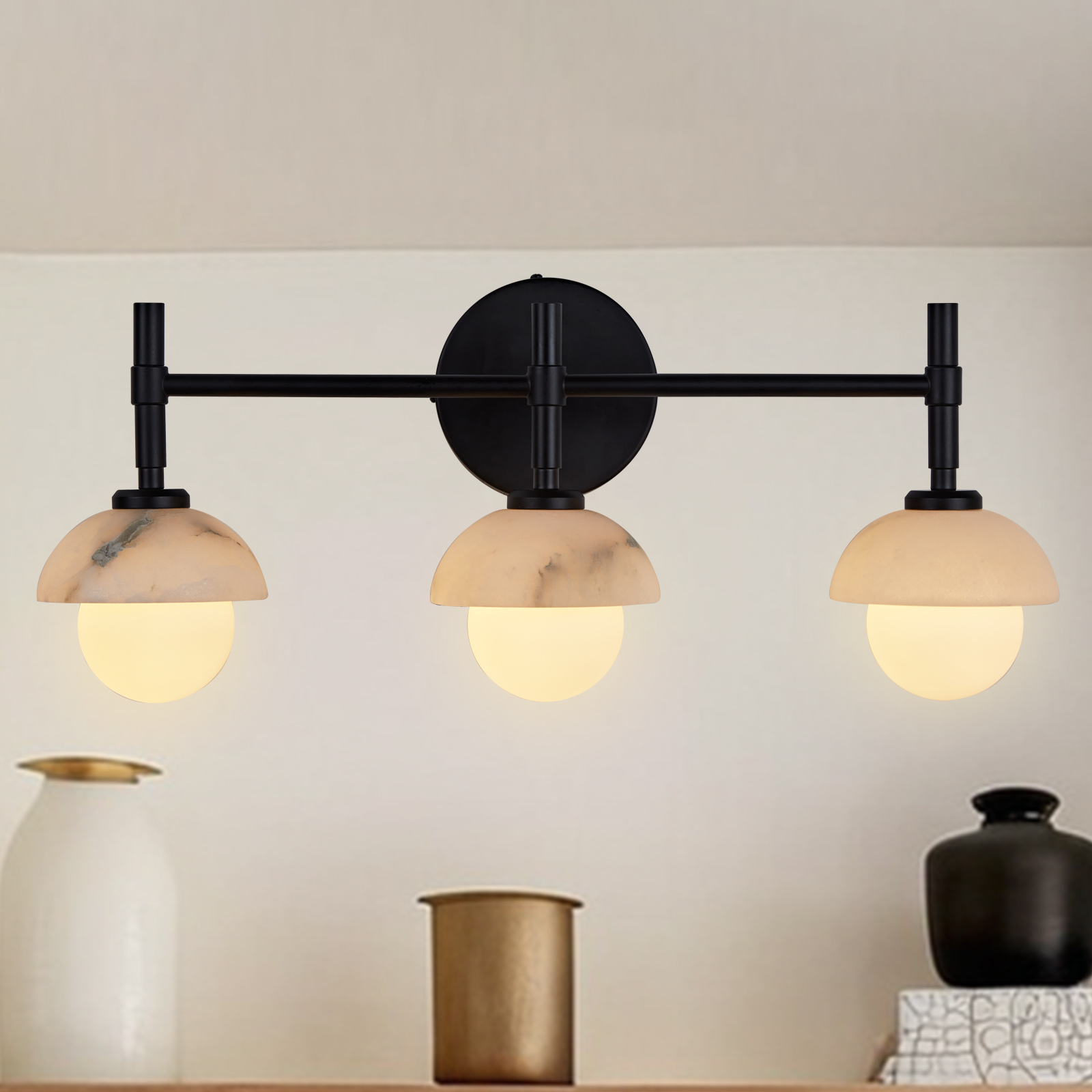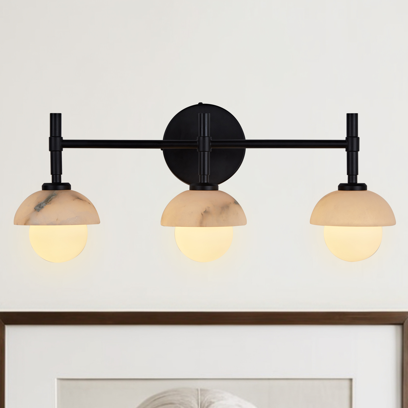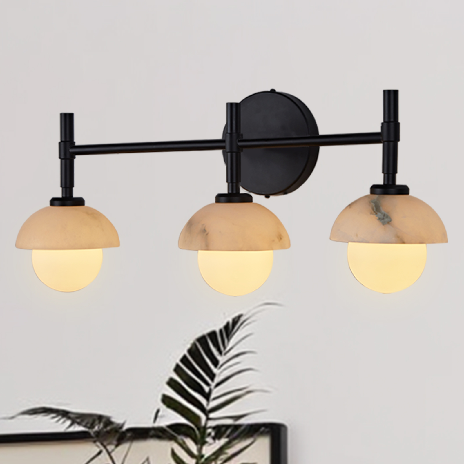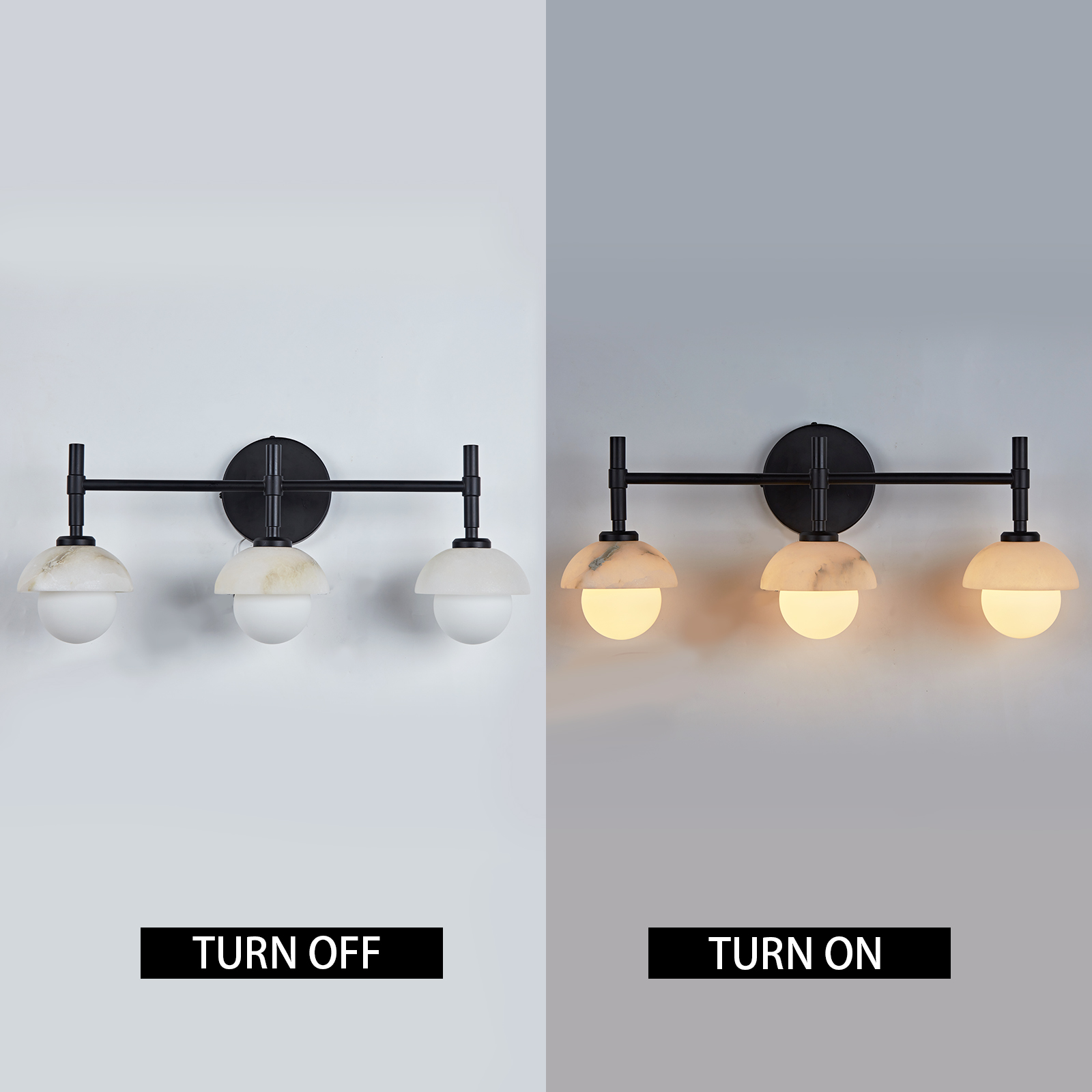 - Enhance your bathroom decor with the exquisite Modern Alabaster Glass Shades Rounded Triple Sconce, a versatile vanity wall lamp that elevates your space with elegance.