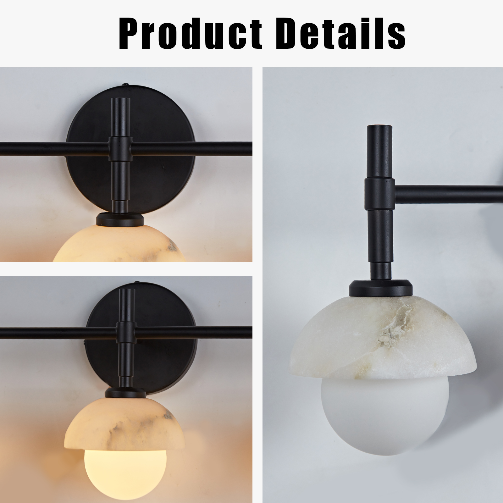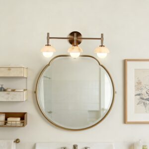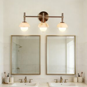 - Elegant Bathroom Sconces Collection with premium brass construction and opal or alabaster shade options for a refined look.