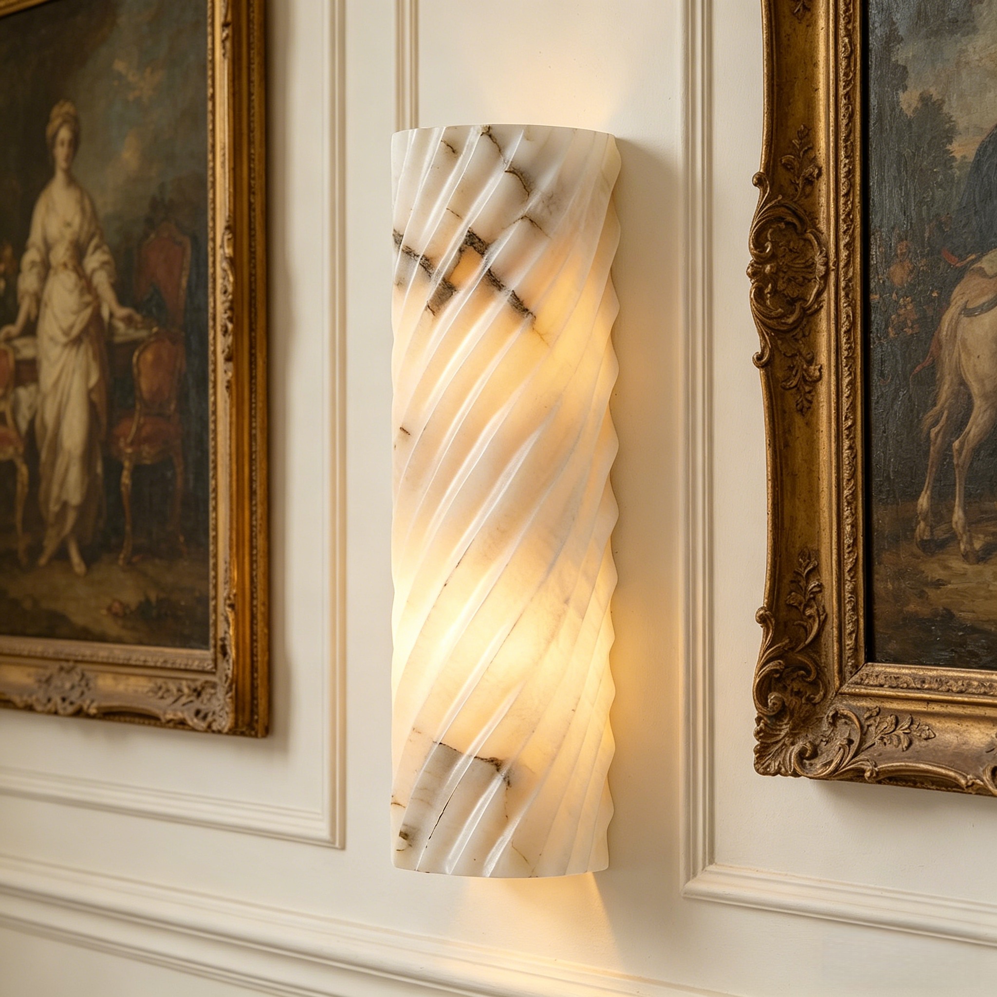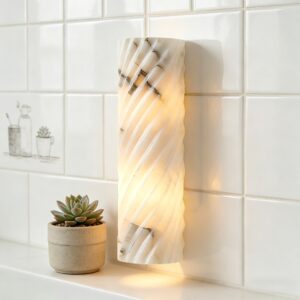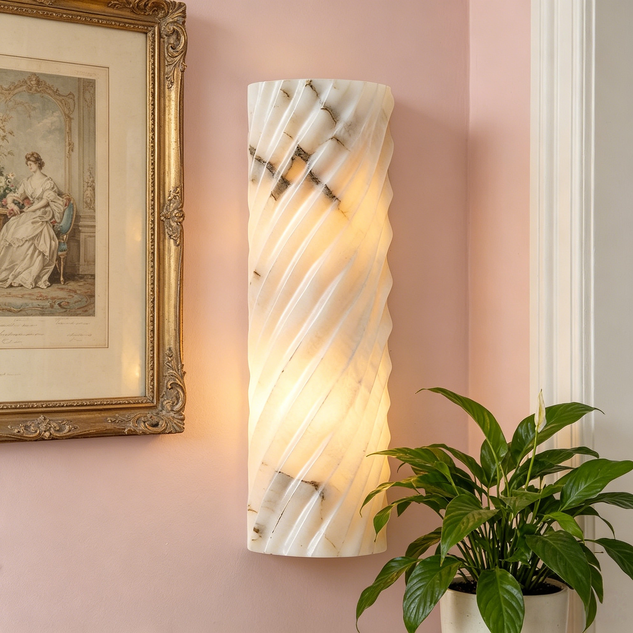 - Elevate any room with this exquisitely crafted fixture, blending timeless brass with the soft elegance of faux alabaster. Its sophisticated design adds a touch of refinement to your space, whether you’re seeking to enhance your living room, bedroom, hallway, or any indoor area.