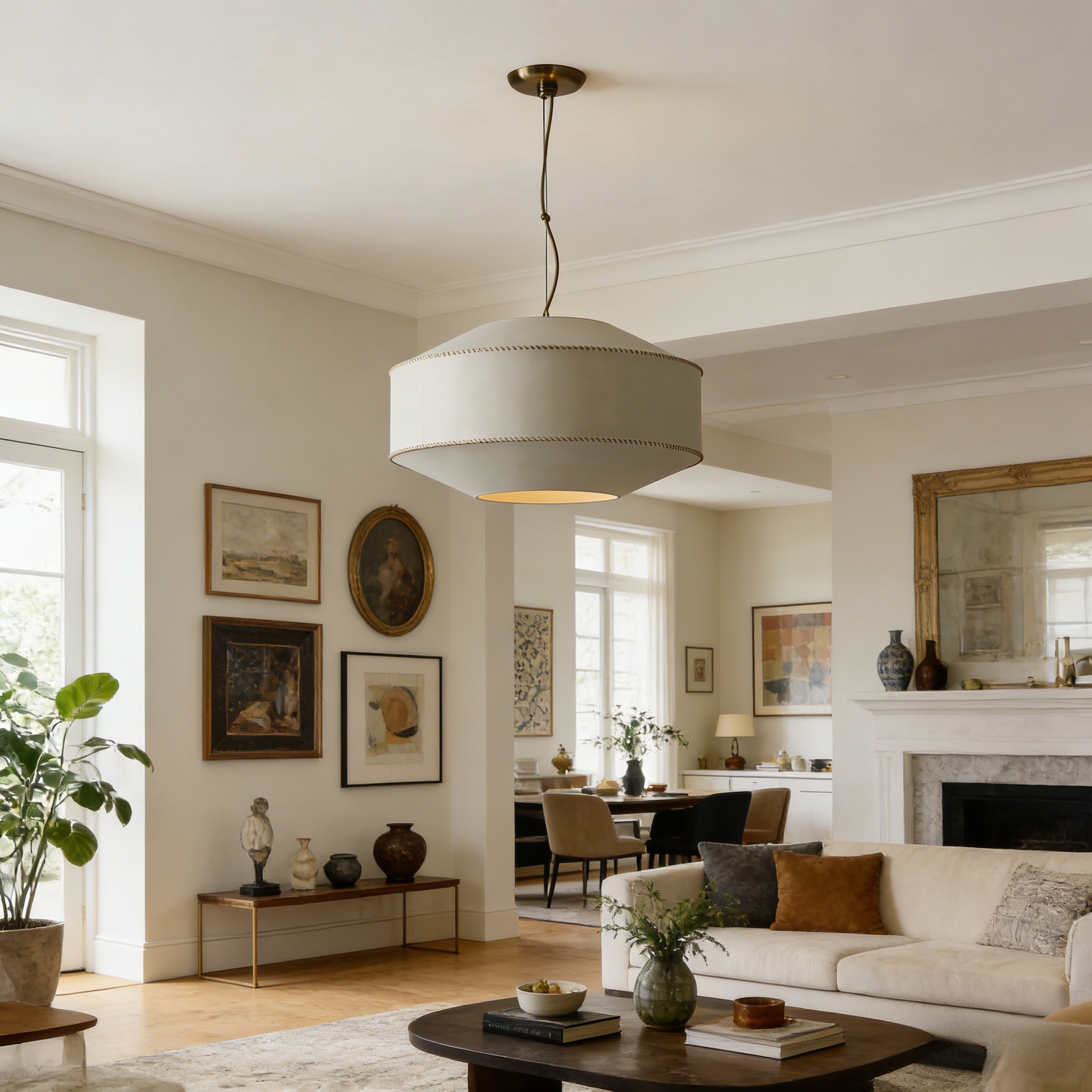 • Elevate your home with a chandelier that balances subtle elegance and understated charm—featuring a softly diffused parchment paper shade that casts a warm, even glow, turning any room into a cozy, inviting haven. Designed with thoughtful details, this piece brings quiet dimension to your space, complementing a range of interior styles from transitional to classic.