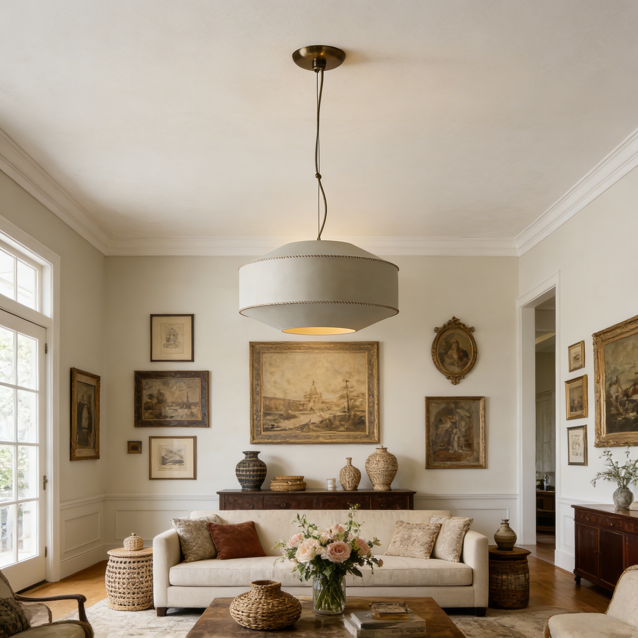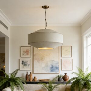 • The streamlined silhouette feels tailored to your home, avoiding overly ornate details while still making a refined statement. Paper cording adds subtle texture and delicate detail, pairing beautifully with the metal body’s Antique Brass finish for a look that’s both timeless and fresh. Whether hung in your dining room, living room, foyer, or bedroom, this chandelier infuses your space with warmth and sophistication.