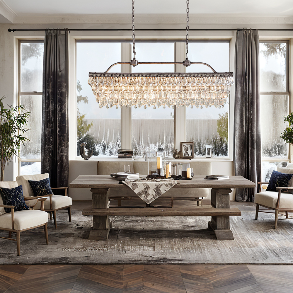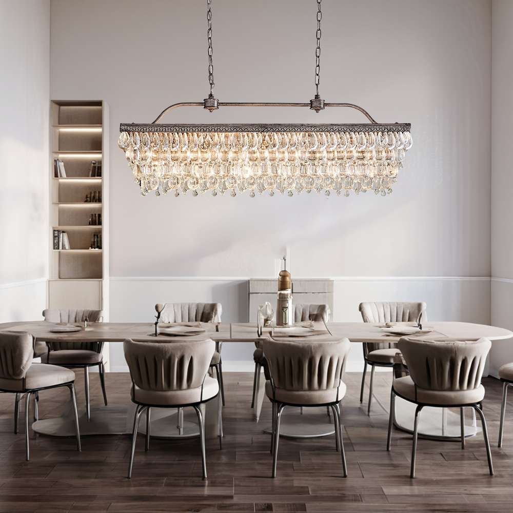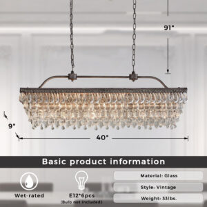 • Immerse your dining room, living room, or bedroom in opulent radiance with our Vintage Rectangular Chandelier, an exquisite addition that exudes luxury and sophistication. This stunning Ceiling Lamps For Living Room will captivate your guests and elevate the ambiance of your space.