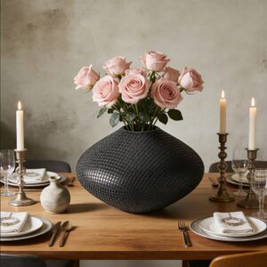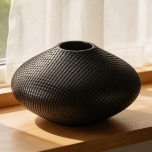 - Rich textured finish: The black terracotta features a tactile, dimensional texture that adds depth and visual interest to the vase’s design