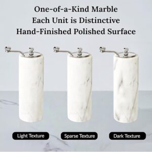 White Marble Adjustable Grind Pepper Mill measures 2.2″W x 2.2″D x 6″H