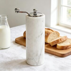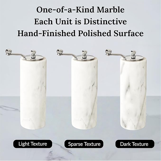- Made of marble with a stainless steel grinding mechanism, easy maintenance with a simple wipe clean using a damp cloth.