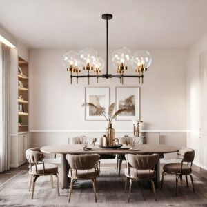 - Introducing the stunning Glass Globe Chandelier, a perfect addition to your dining room, sitting room, or living room ceiling.