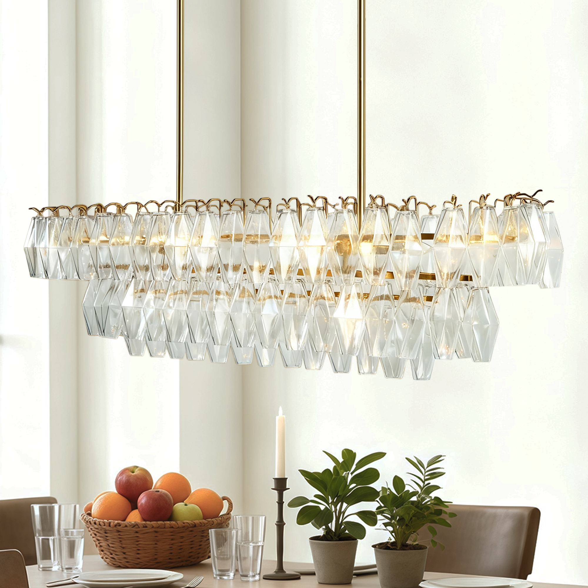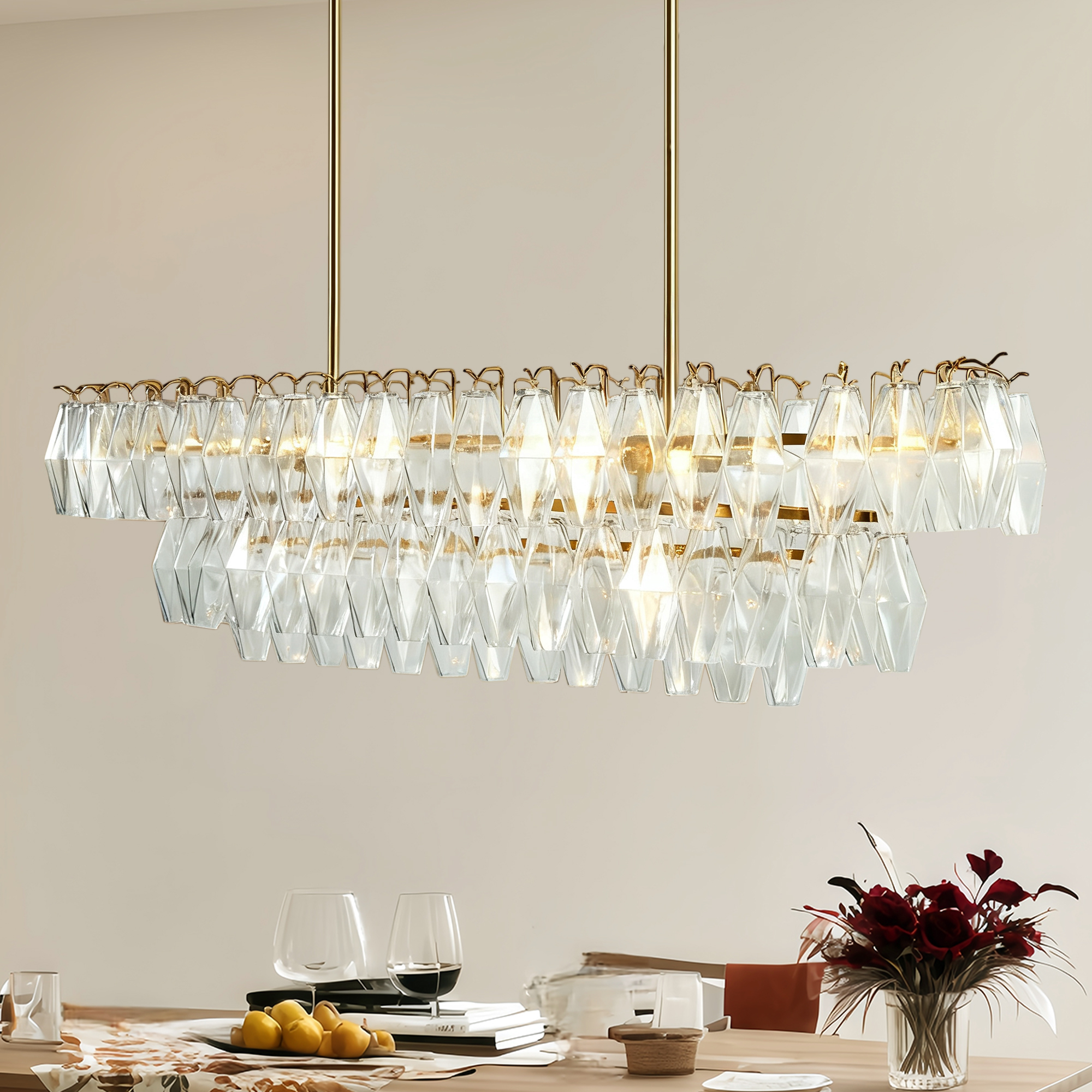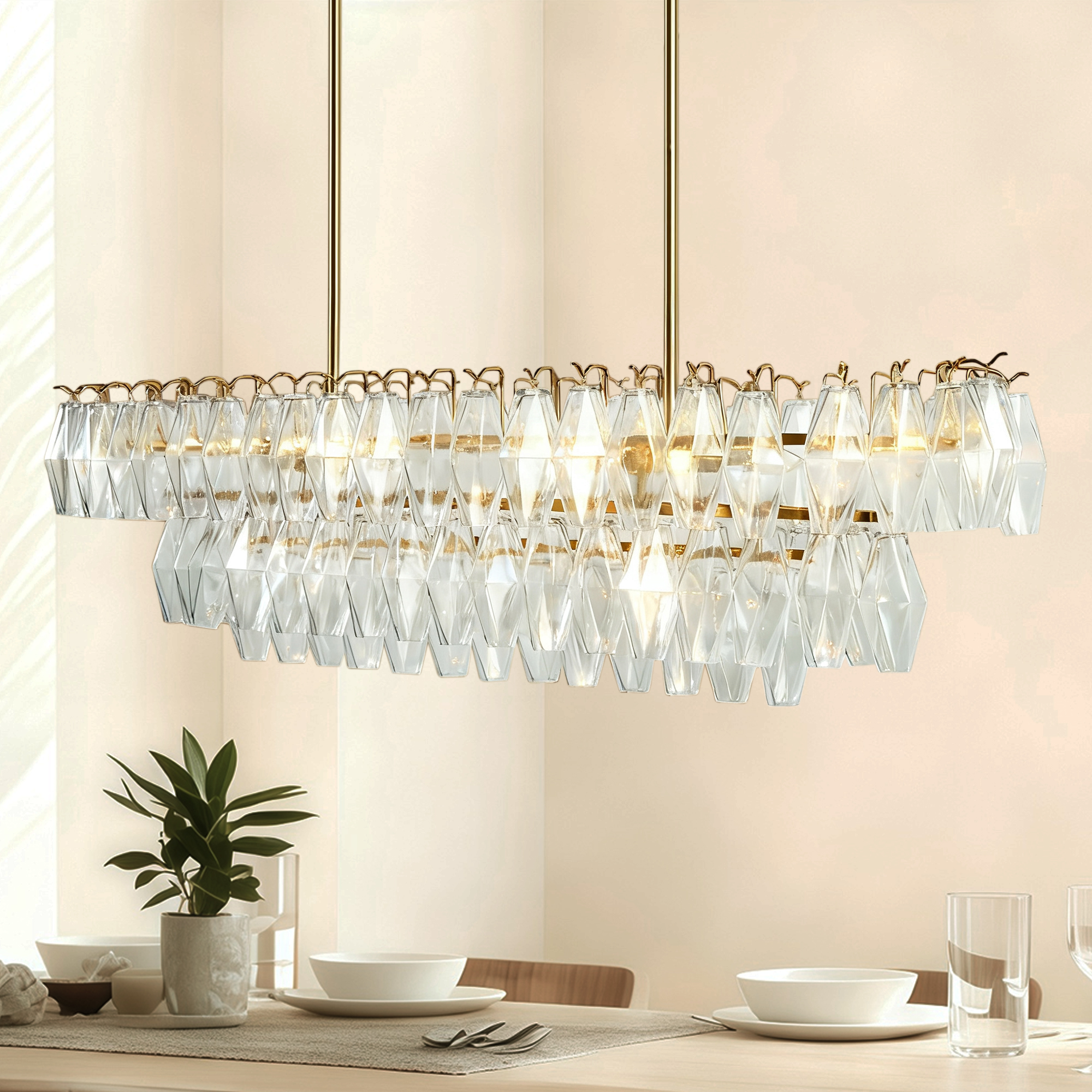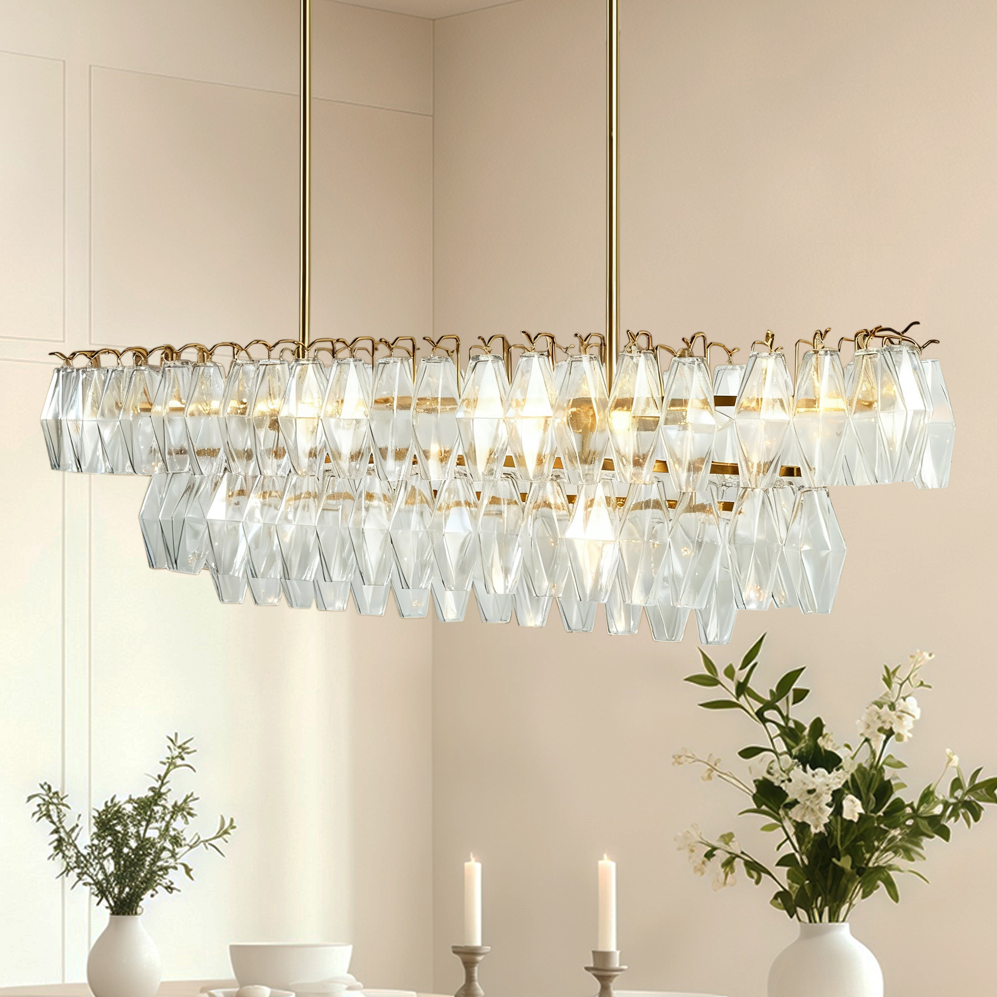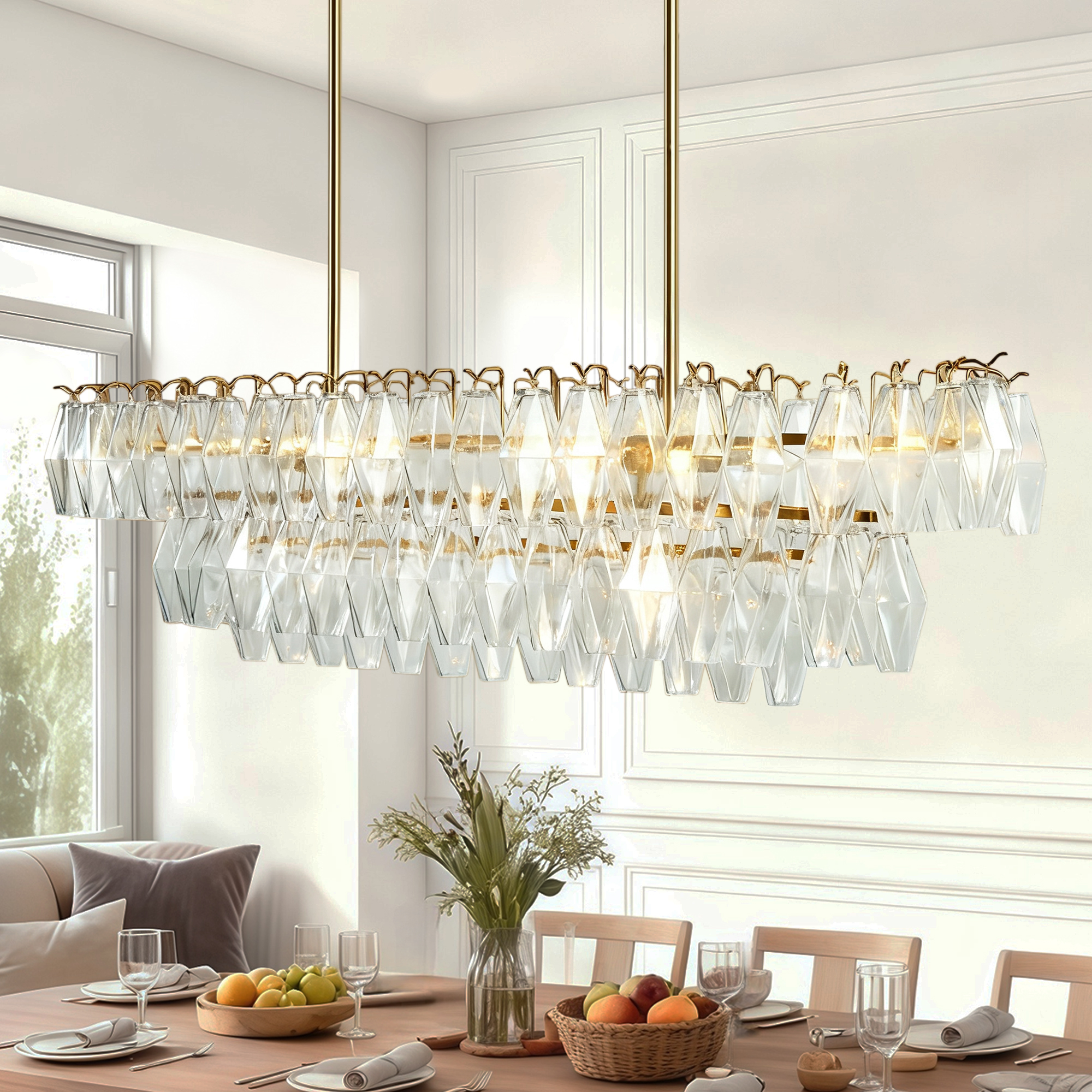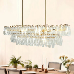 - Get ready to brighten your home with our stunning Crystal Linear Chandelier! This exquisite piece effortlessly transforms any setting, making it an ideal addition to your dining room or living area. With its timeless elegance and modern sophistication, it serves as a captivating dining room chandelier that enhances your gatherings with style. The sleek design and fluted crystal effect create a striking visual impact, making it just as perfect as a living room chandelier, providing a warm and inviting ambiance for entertaining or relaxing evenings.