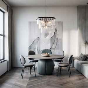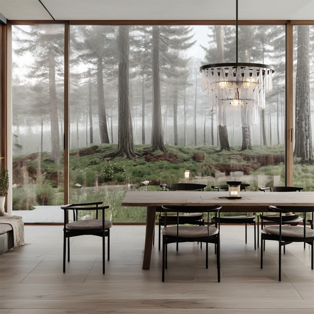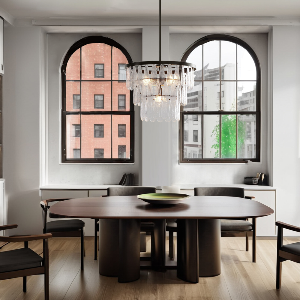 - Illuminate your living room with a touch of sophistication using this textured glass round chandelier. This stunning fixture effortlessly combines vintage-inspired charm with a modern twist, making it a perfect fit for contemporary living spaces.
