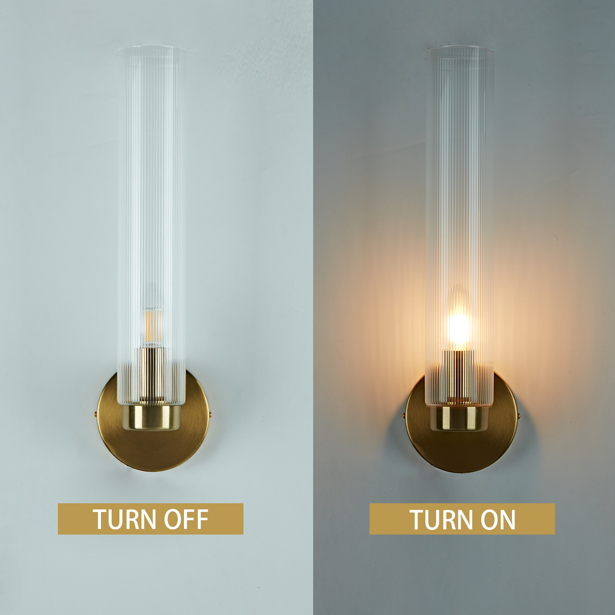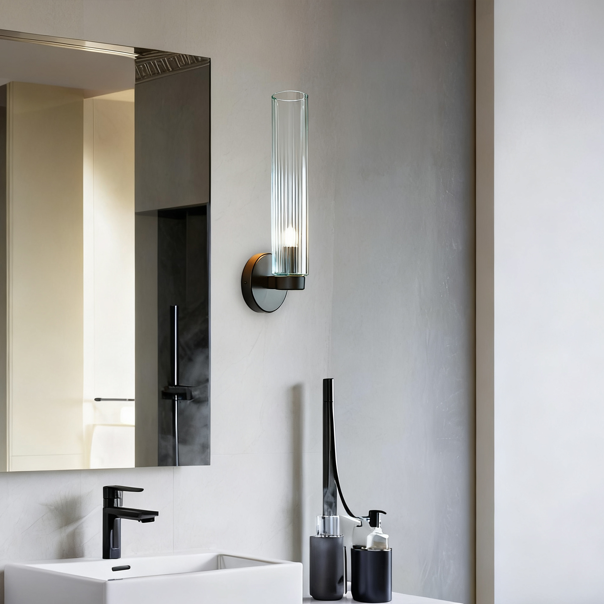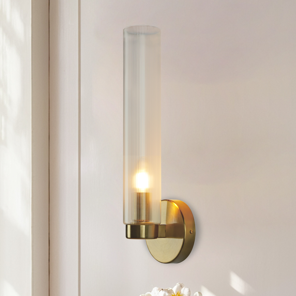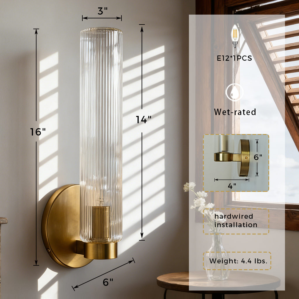 Introducing our stylish Bathroom Sconce, the perfect addition to your bathroom wall lights collection! This elegant Bathroom Wall Sconce features a beautiful fluted glass shade that adds a unique textural touch to your space. The metal canopy comes in a variety of sleek metallic finishes to suit your style preferences.