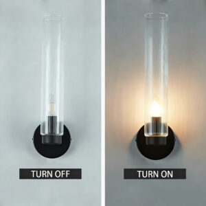 - With dimensions of 6″w x 4″d x 16″h, this hardwired sconce offers convenient compatibility with a 60W E12 bulb or LED equivalent, making it energy-efficient and functional for different lighting needs.