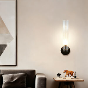 - The sconce features a fluted glass shade that adds a textural touch to its design, enhancing its aesthetic appeal.