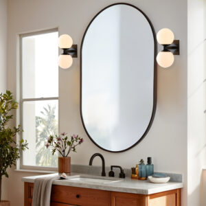 - Oval LED Mirror Chrome Bathroom Sconce, a perfect blend of industrial and modern design elements. This indoor sconce wall light will add a touch of elegance to any space.