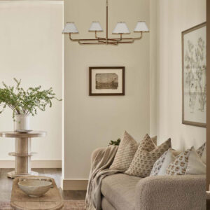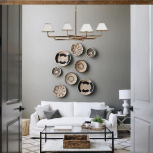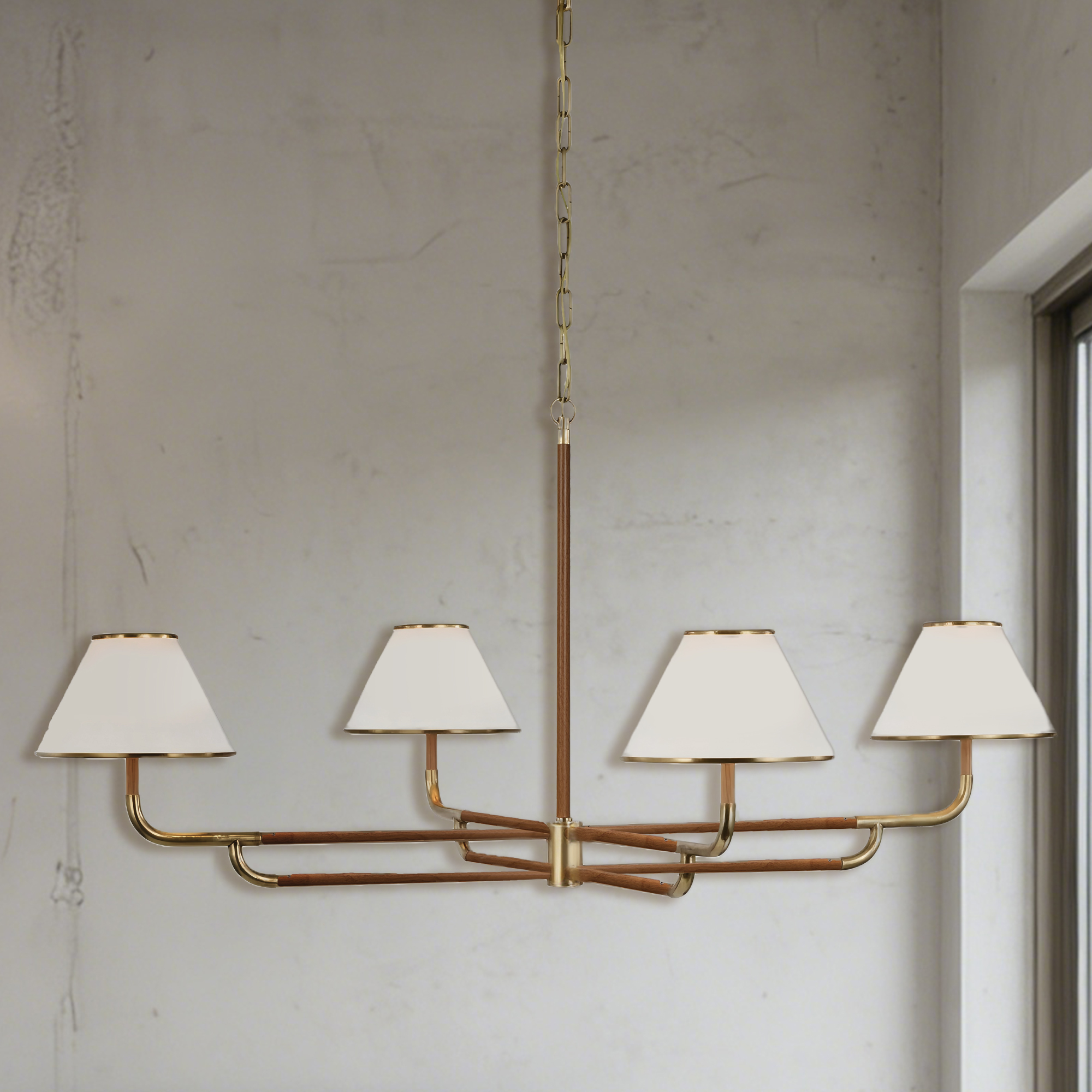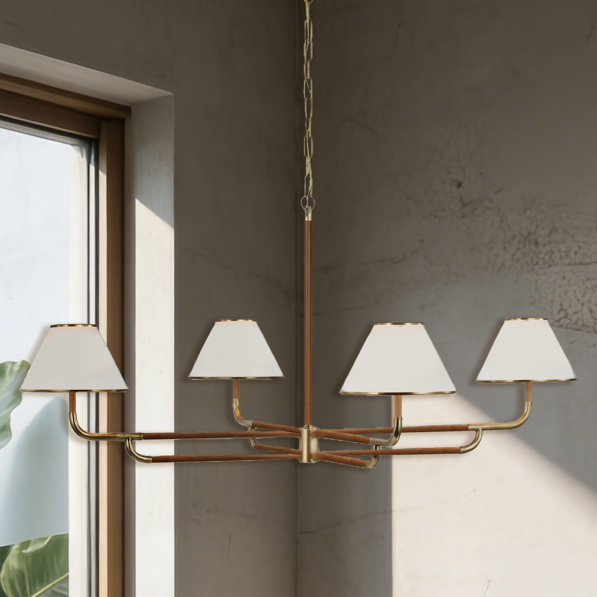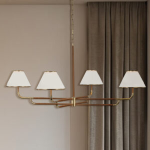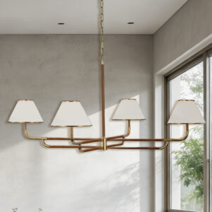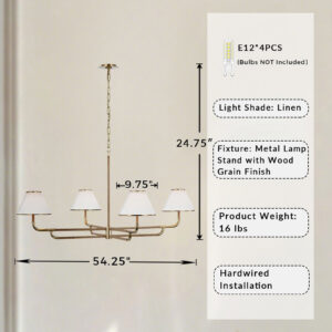 - Our stunning Linen Chandelier, a versatile lighting fixture perfect for your dining room, bedroom, or living room. This chandelier features a modern and angular design with linen shades that add a touch of sophistication to any space.
