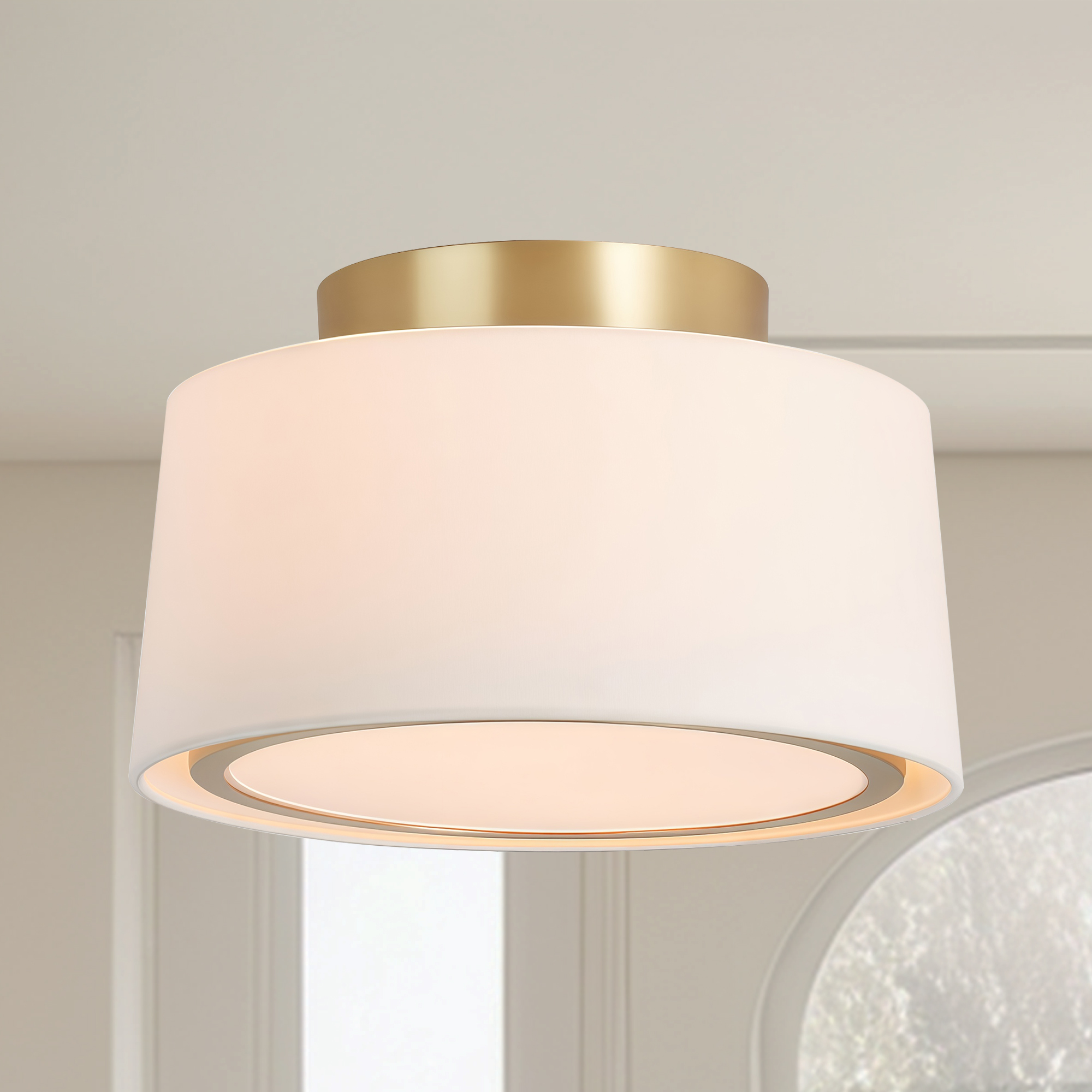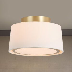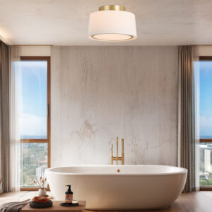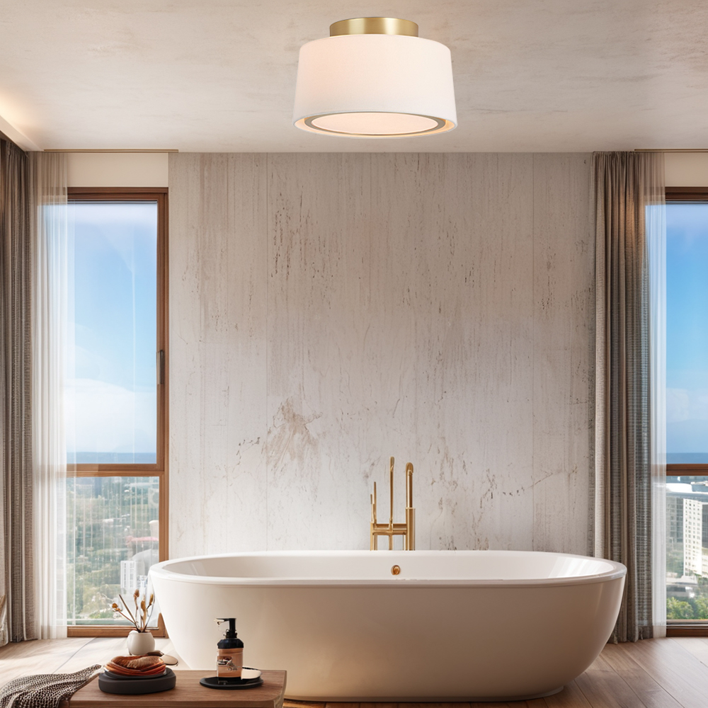 - Elevate the ambiance of your living space with our enchanting Modern Linen Round Flush Mount Ceiling Lamp.