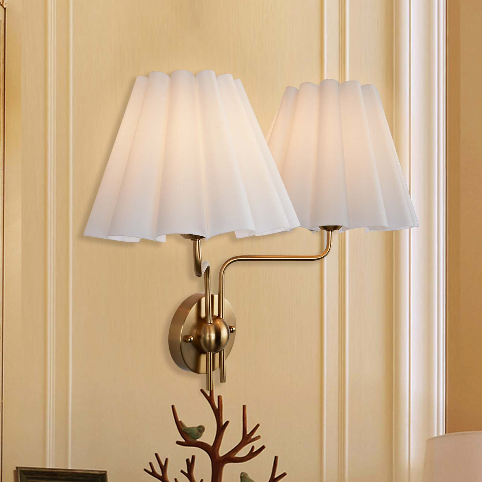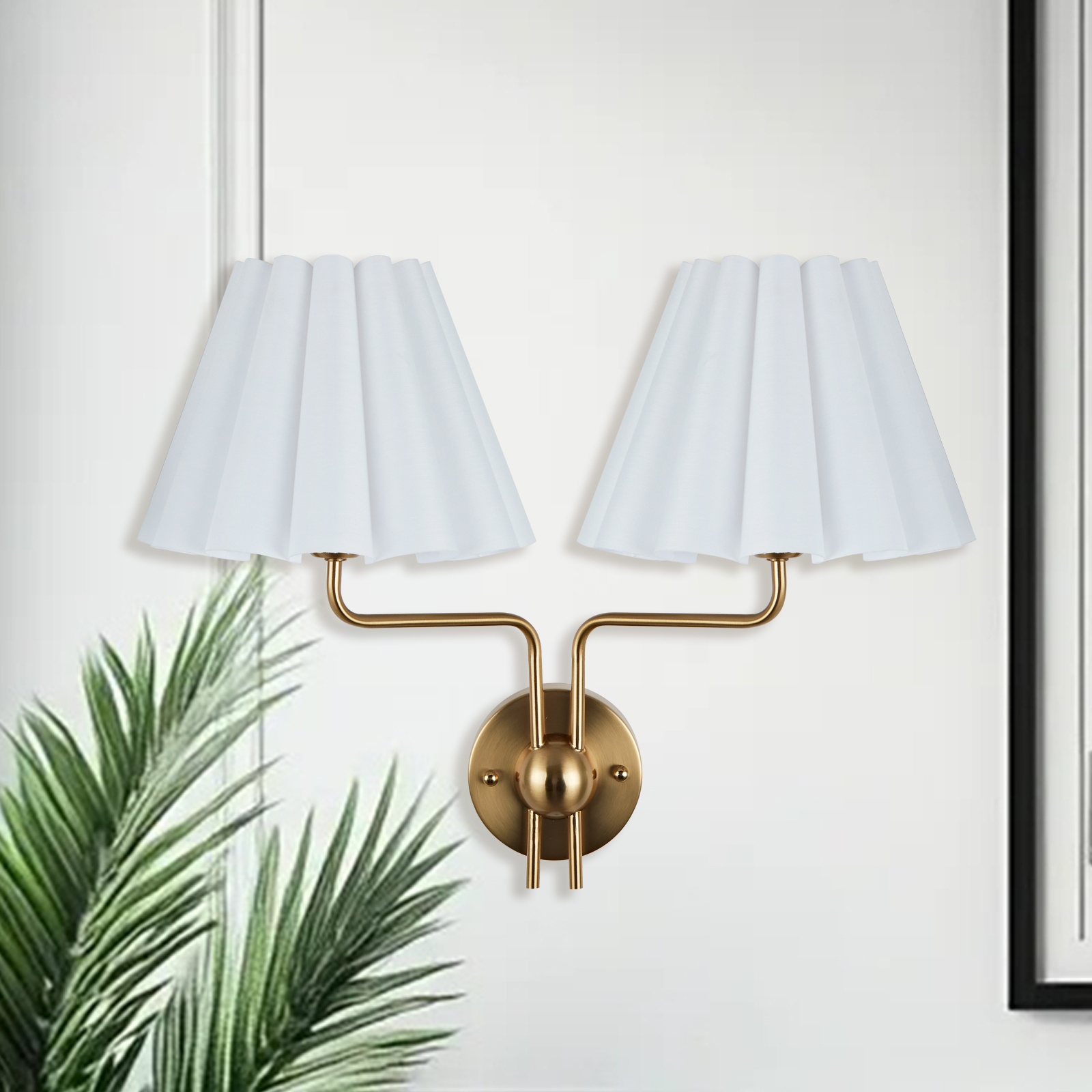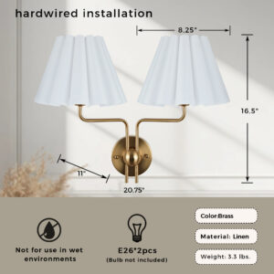 - Not just for living rooms, this versatile sconce works beautifully as wall lights for bedroom settings, kitchen and entryway, creating a warm and inviting atmosphere. Use them in pairs for a balanced look or as a chic standalone piece to enhance your decor. Crafted from durable steel with a sleek brass finish and a white linen shade, it complements any design scheme effortlessly.