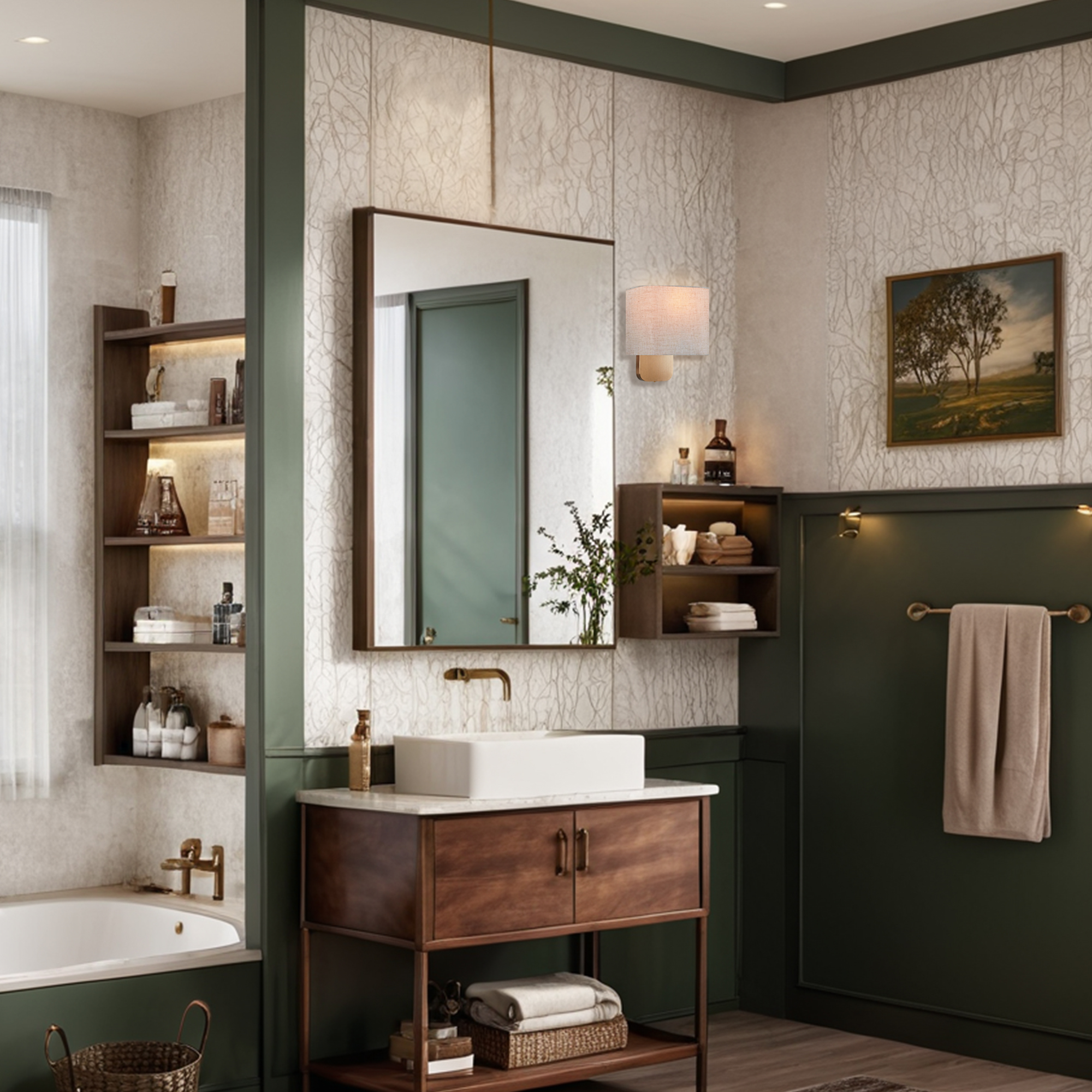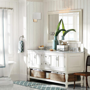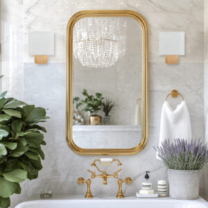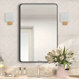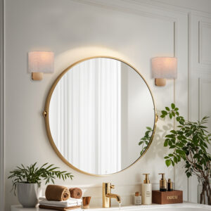 - Damp-rated and designed to withstand moisture, it’s safe to use in the bathroom.