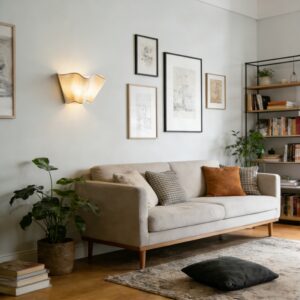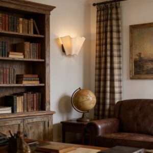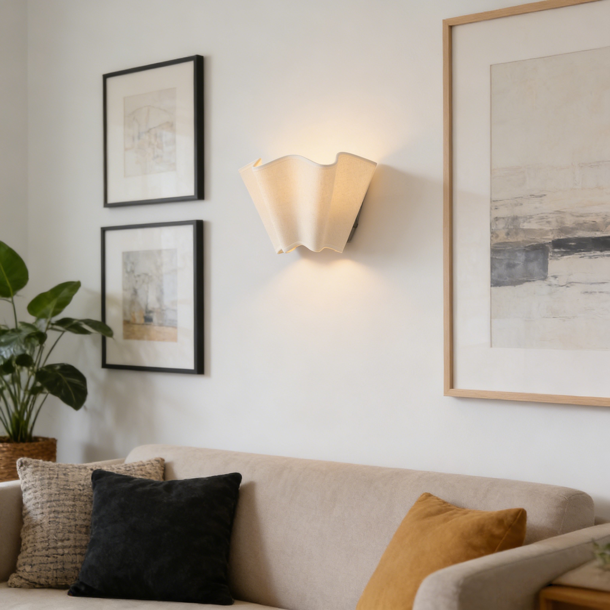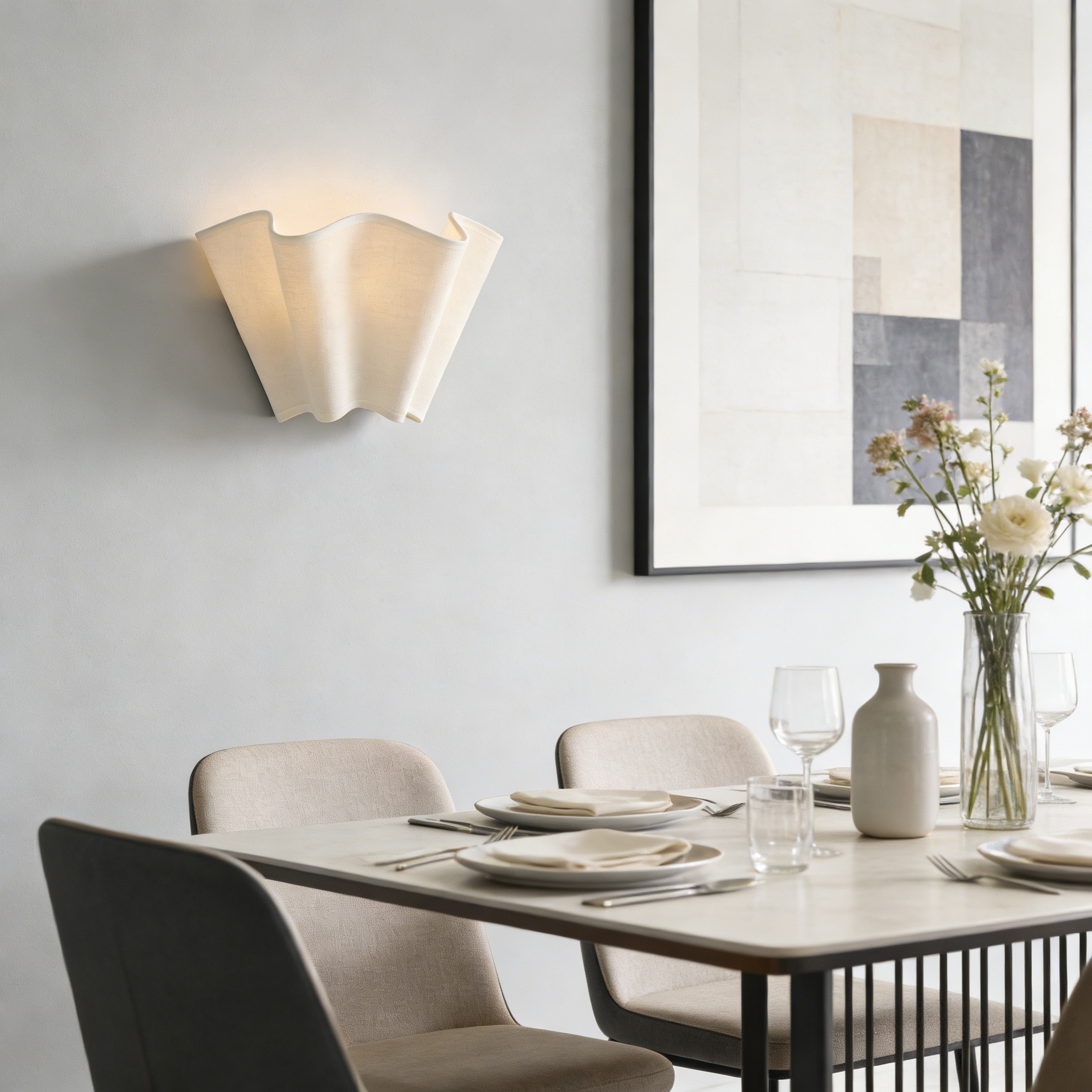 - A Ivory linen shade allows for warm light while it complements the bold structure for a balanced and modern statement wherever it is placed.