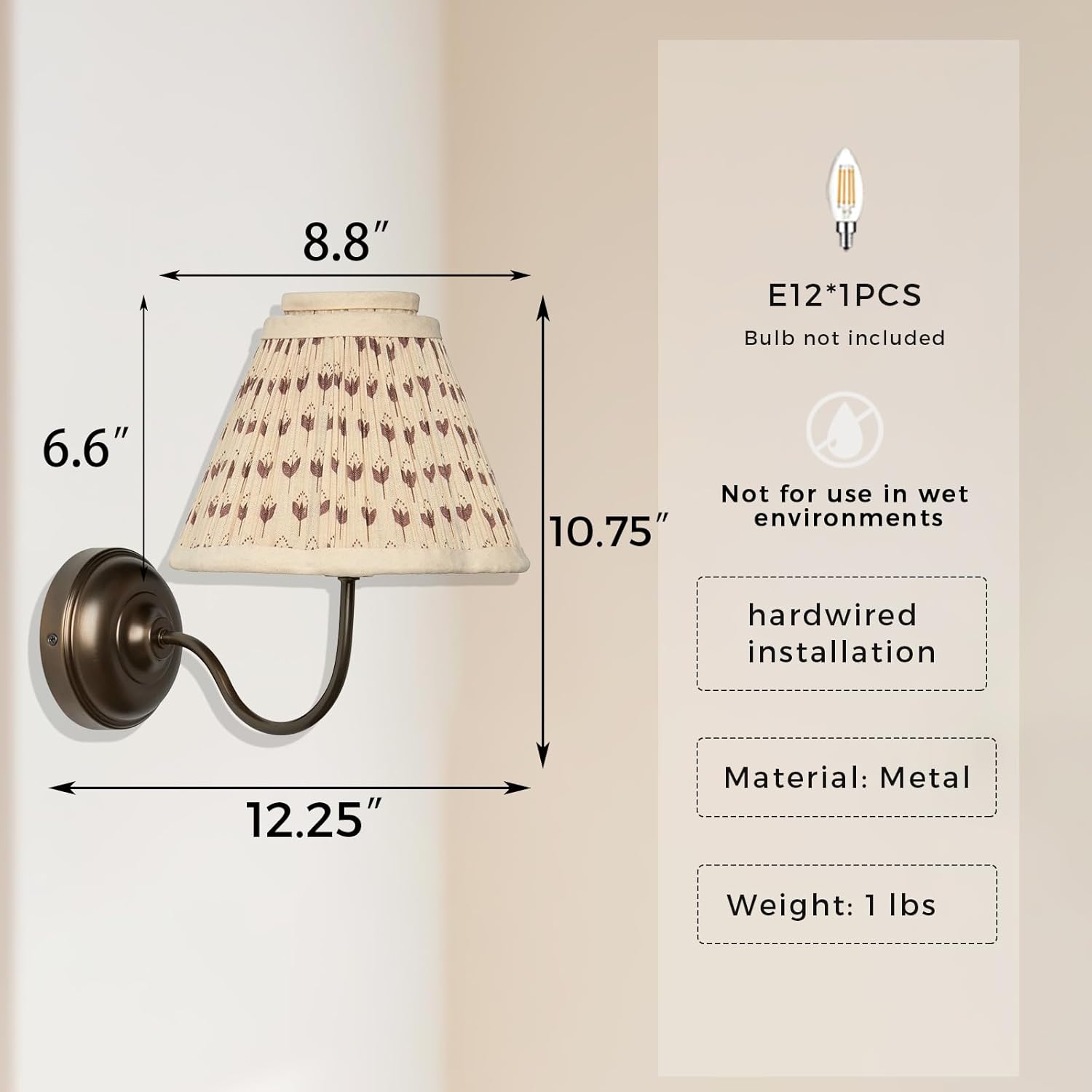 Elegance Floral Print Linen Shade Wall Sconce Light