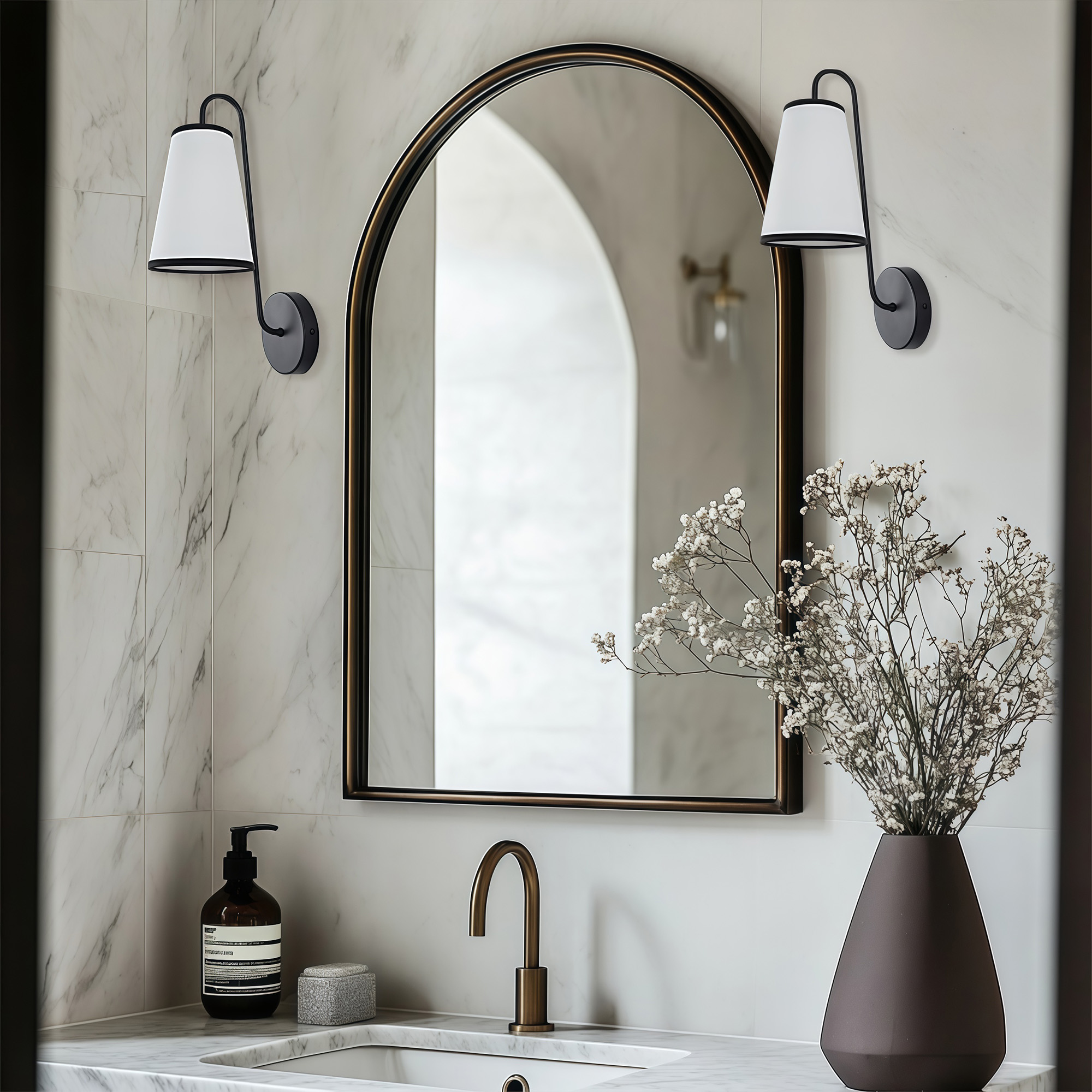 - Looking to enhance your bathroom? These modern bathroom sconces add a touch of sophistication and style, making them the perfect choice for those seeking sleek lighting solutions. Whether you’re using it as a sconce lamp for the bedroom or looking to illuminate hallways, this versatile sconce will shine bright wherever you place it!