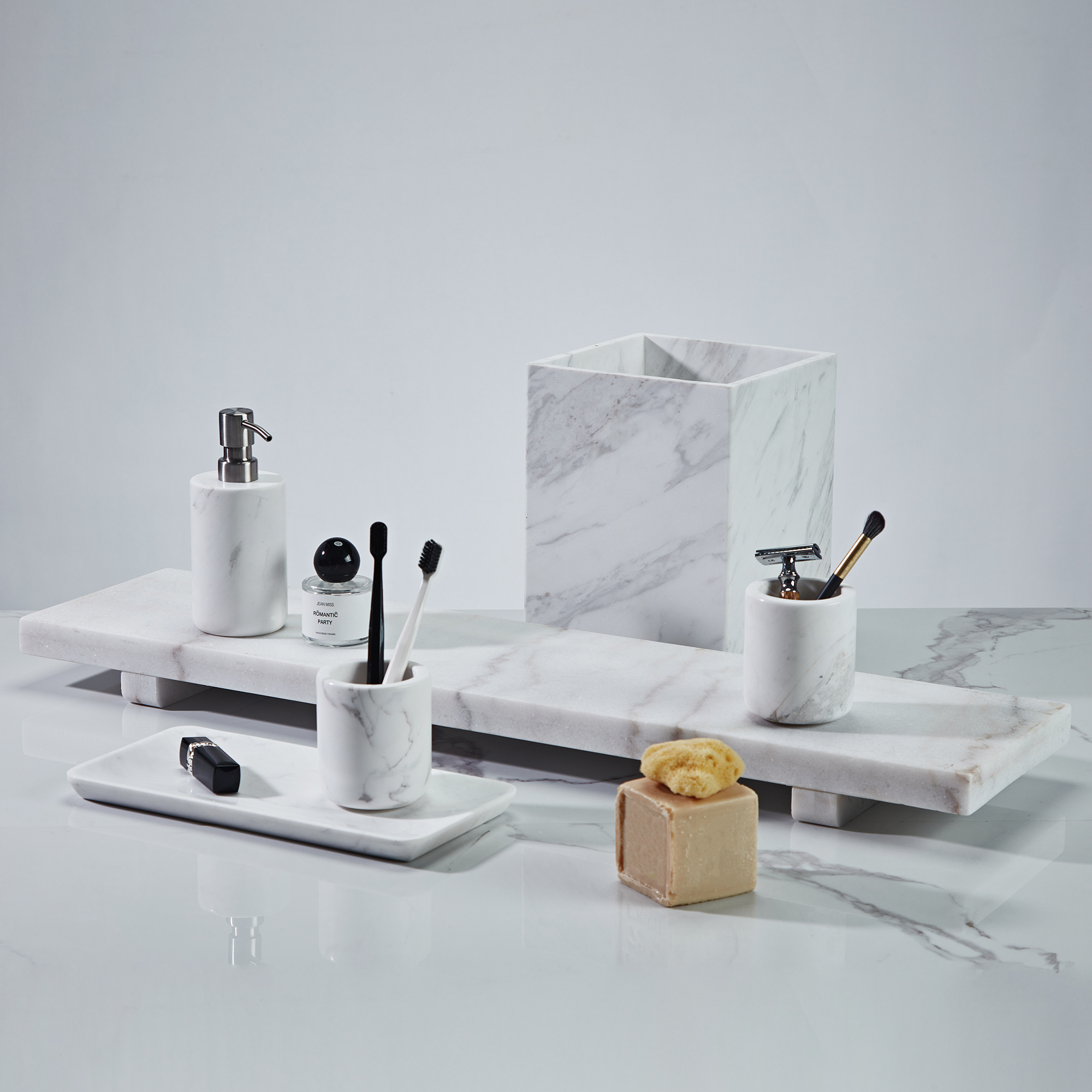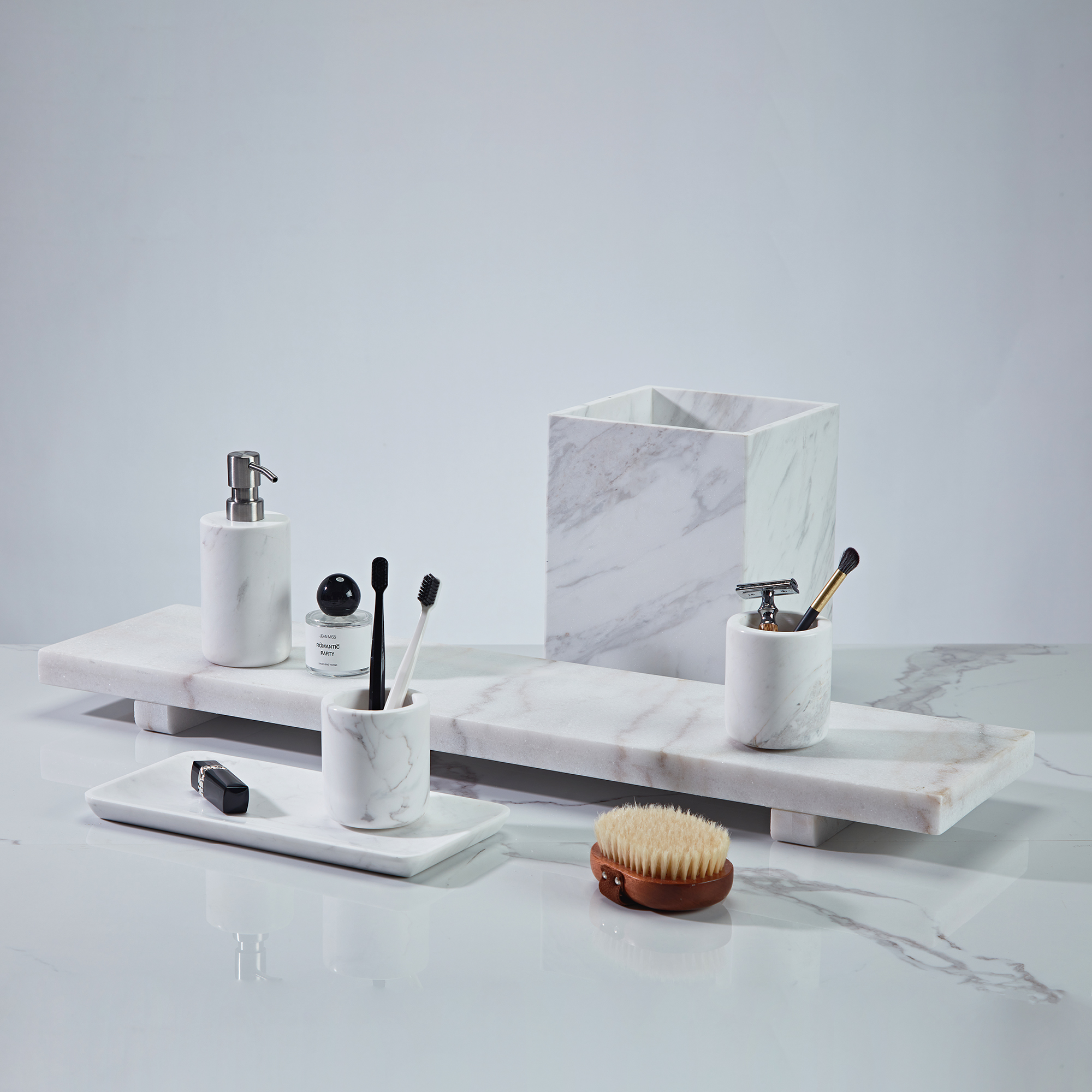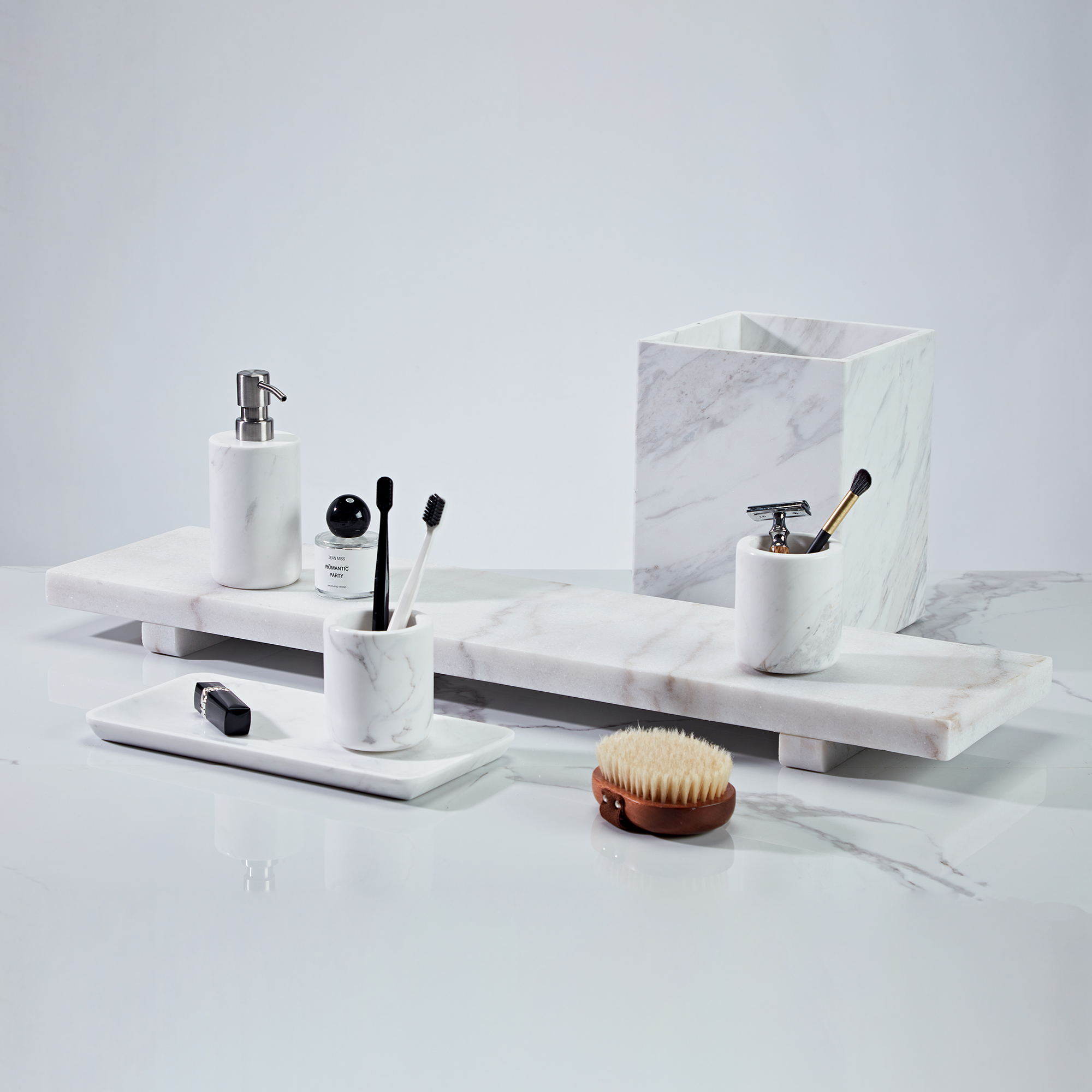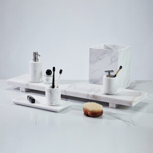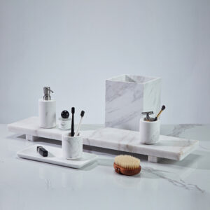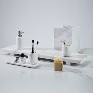 • With easy care—just wipe with a soft cloth—you’ll keep them looking pristine for years to come. Transform your bathroom into a sophisticated sanctuary with our exquisite marble bathroom accessories!