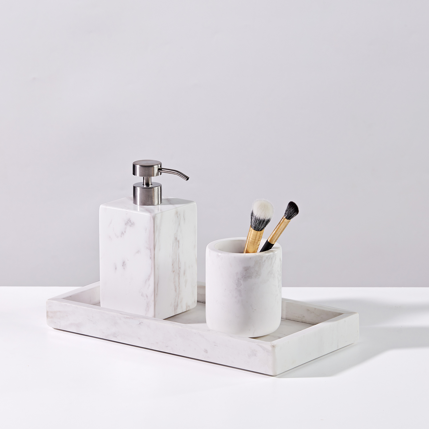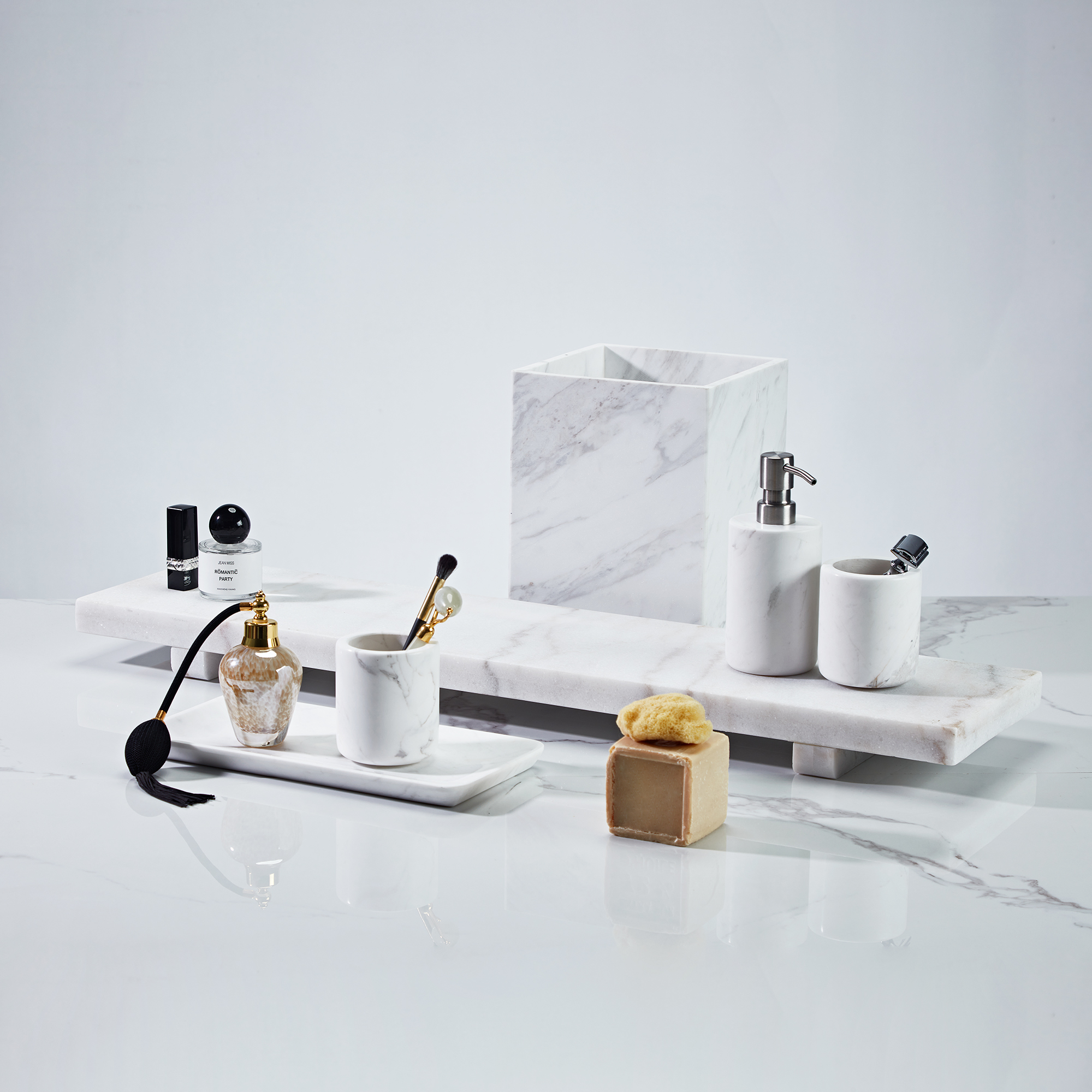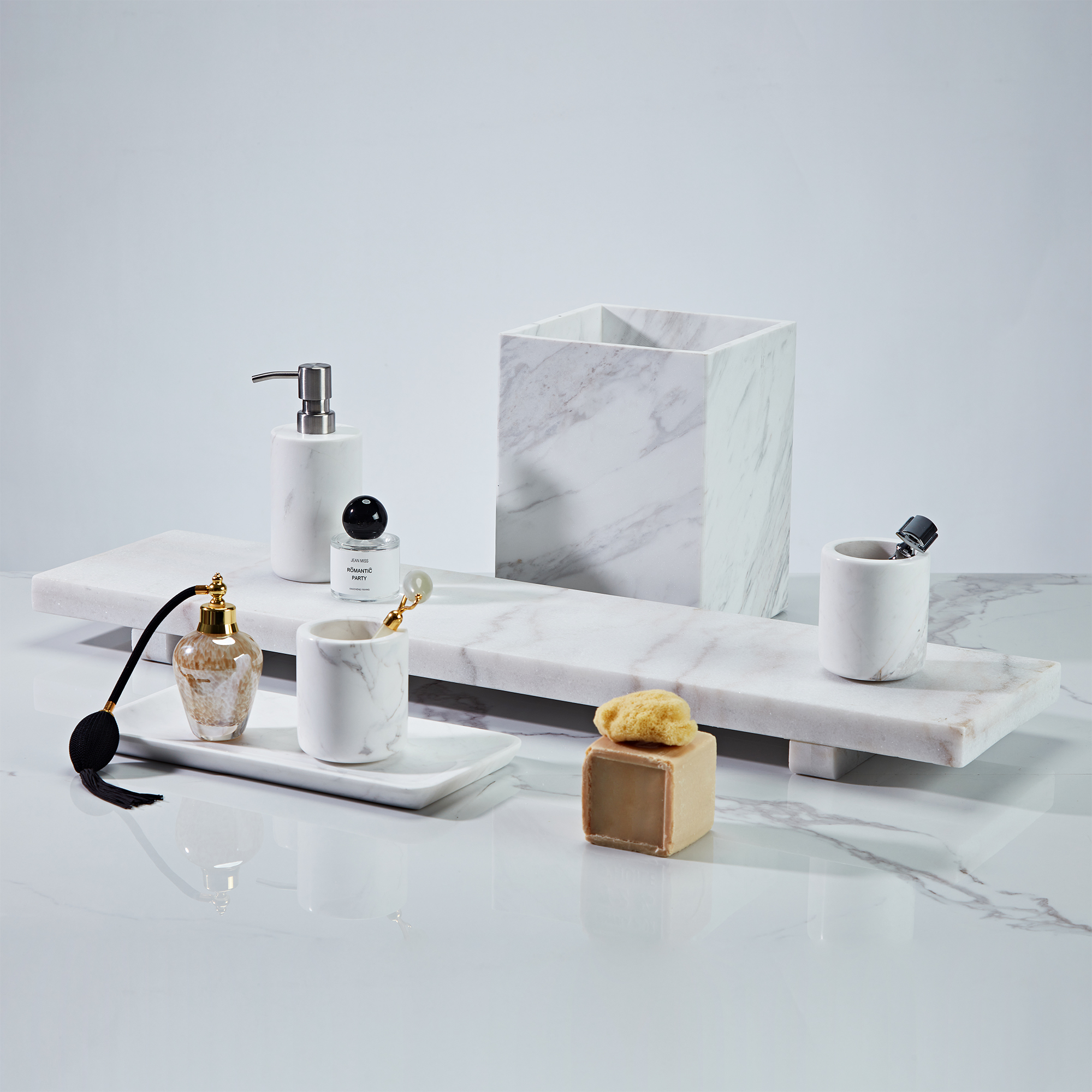 • With easy care—just wipe with a soft cloth—you’ll keep them looking pristine for years to come. Transform your bathroom into a sophisticated sanctuary with our exquisite marble bathroom accessories!