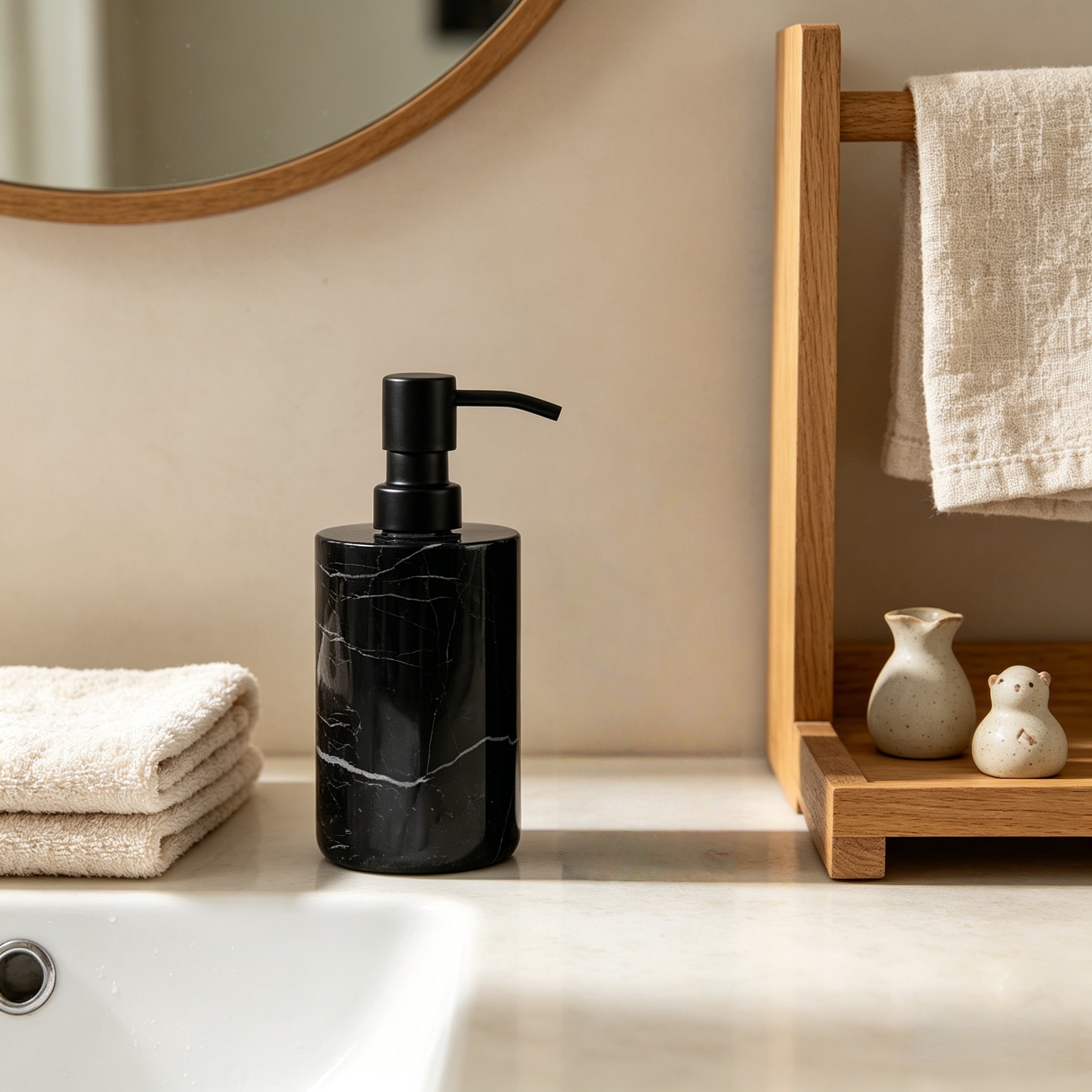 Natural black marble bath accessories are elegant and luxurious additions to any bathroom.