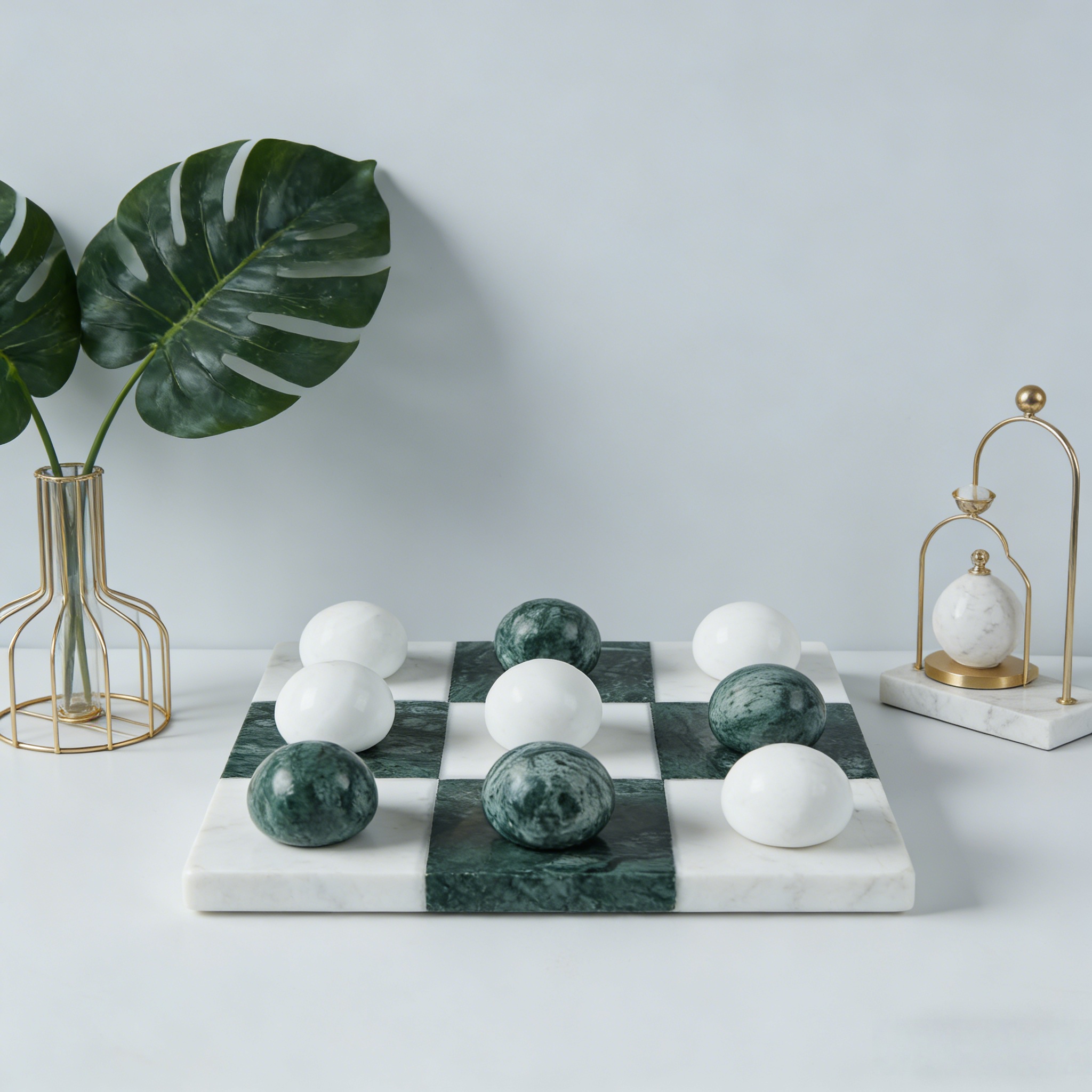 Green Marble Tic-Tac-Toe Board