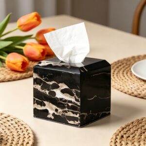 • Transform your space with the Silver Dragon Marble Luxe Tissue Box, a stylish piece that exudes sophistication and elegance! This luxurious tissue box is perfect for enhancing various settings, including the kitchen, bathroom, and entryway.