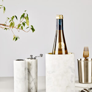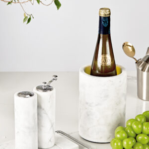- Chill your wine in style with the French Kitchen Marble Wine Cooler, featuring a column of cool white marble with unique grey veining that adds classic flair to your table setting.