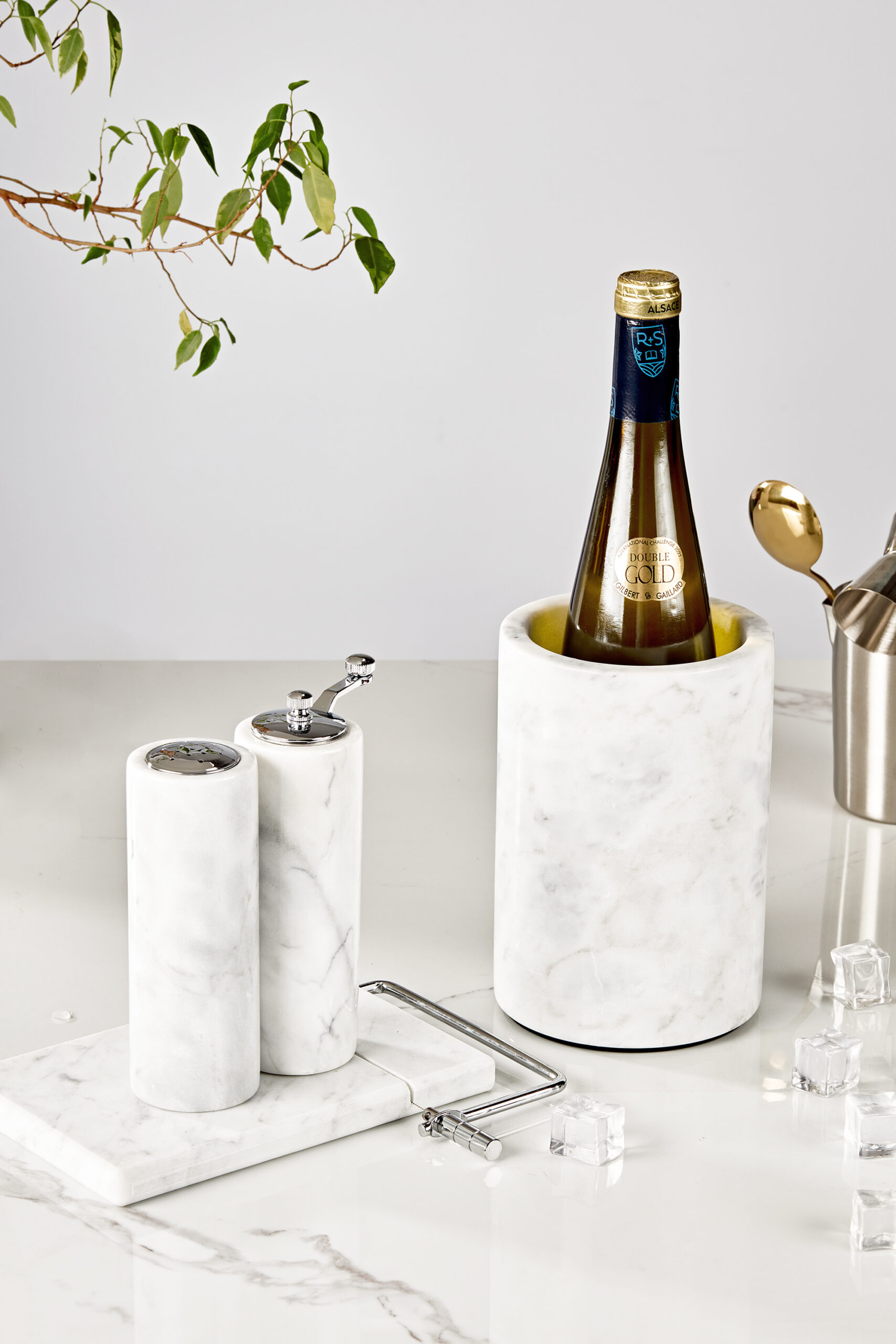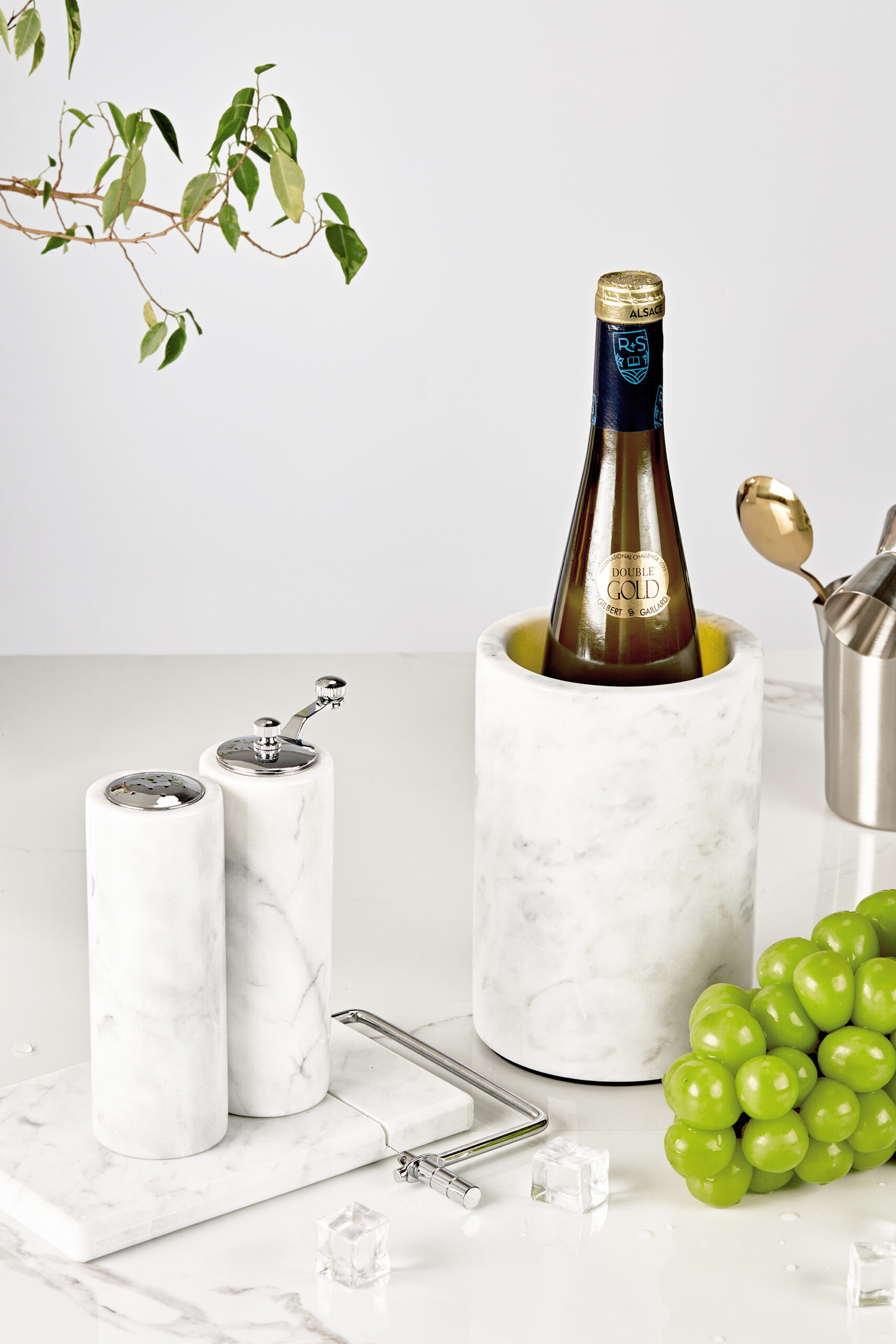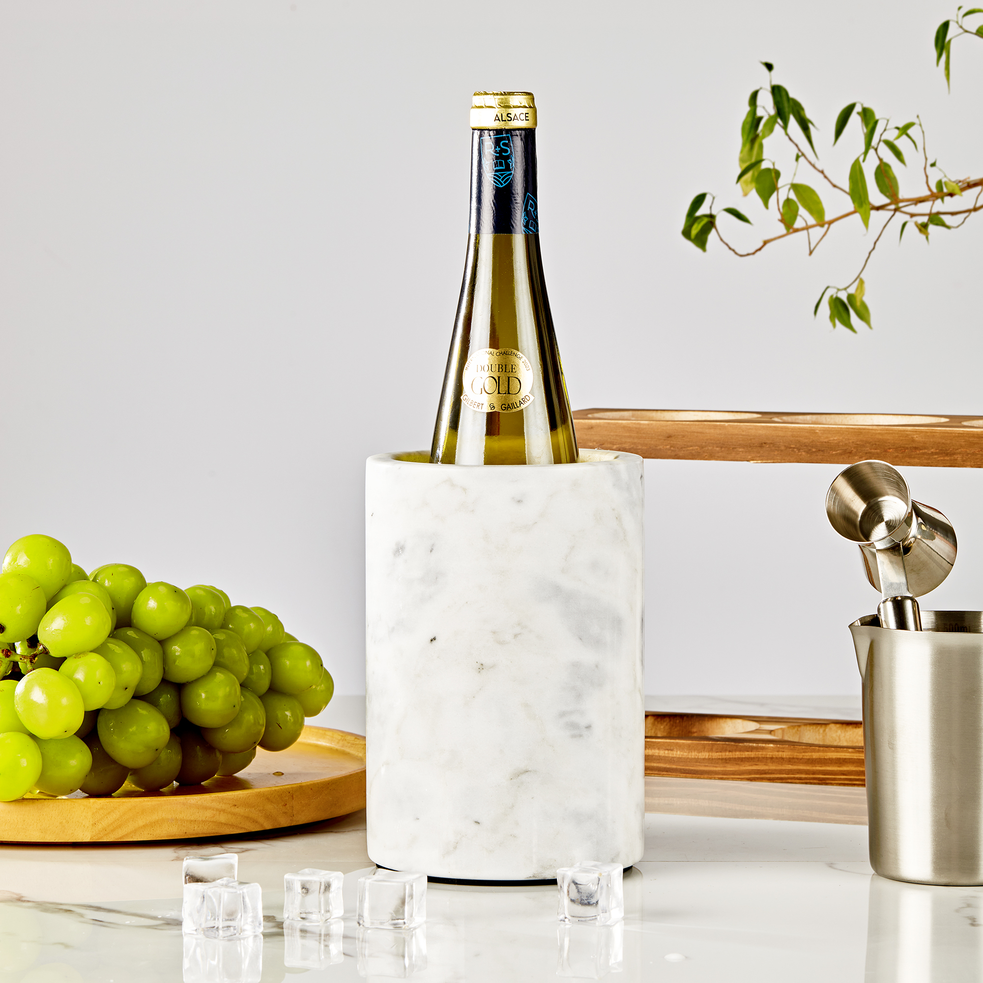 - This stylish piece, reminiscent of the marble wine cooler, features cool white marble with unique grey veining to chill your favorite wines in classic style.