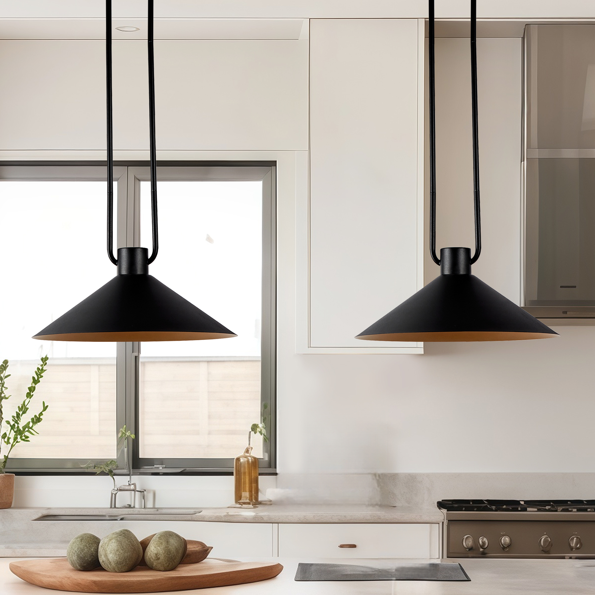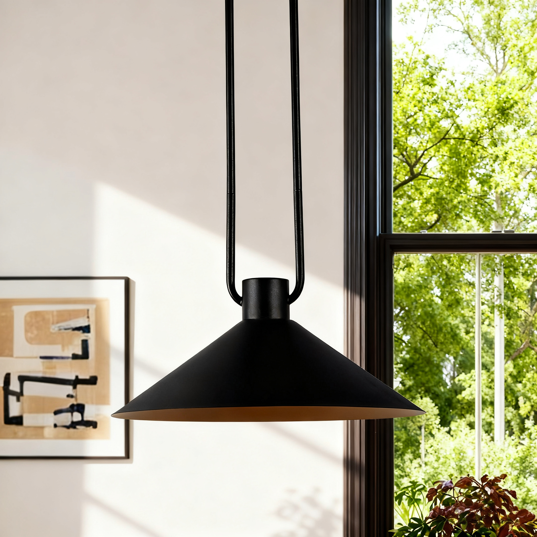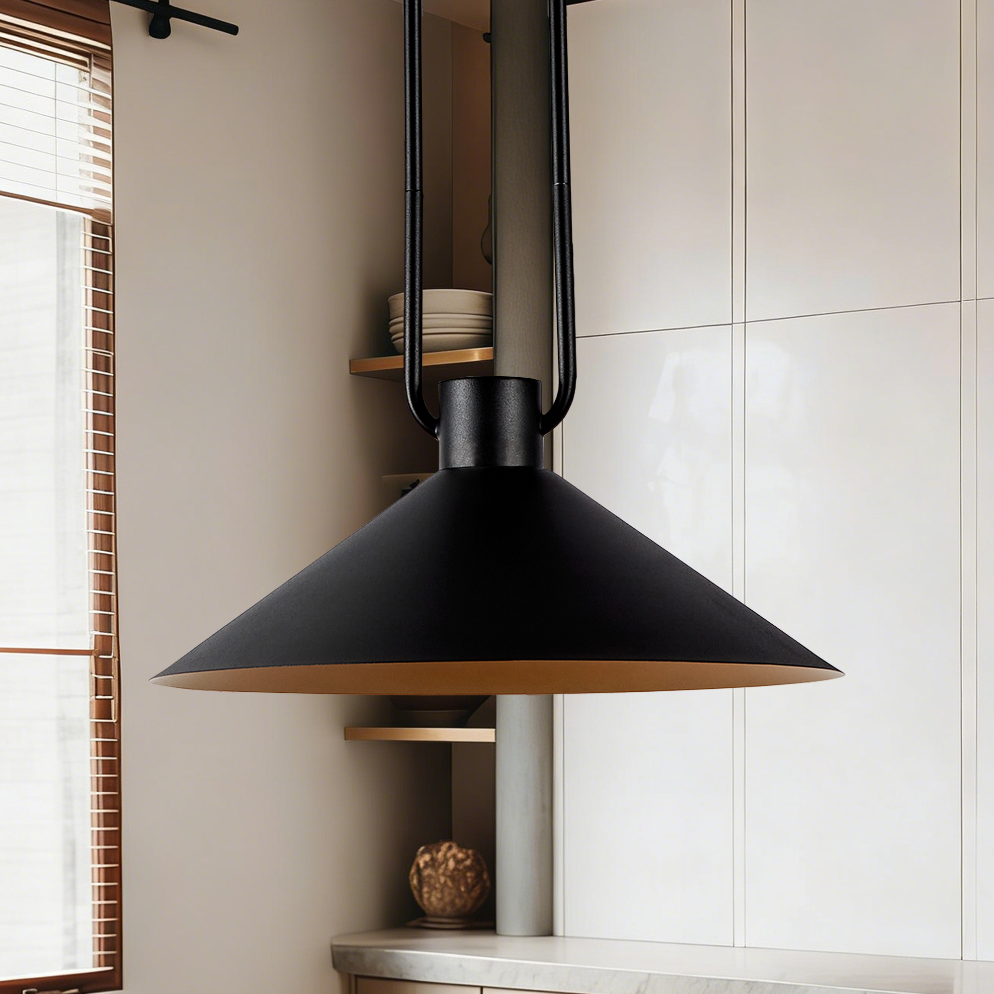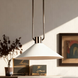 - A loop of slender tubing supports a conical shade that focuses light while providing a soft glow. Hung over a breakfast table or in multiples down a hallway or above a kitchen island, the elegant cone pendant offers an illuminating mix of task and ambient lighting.