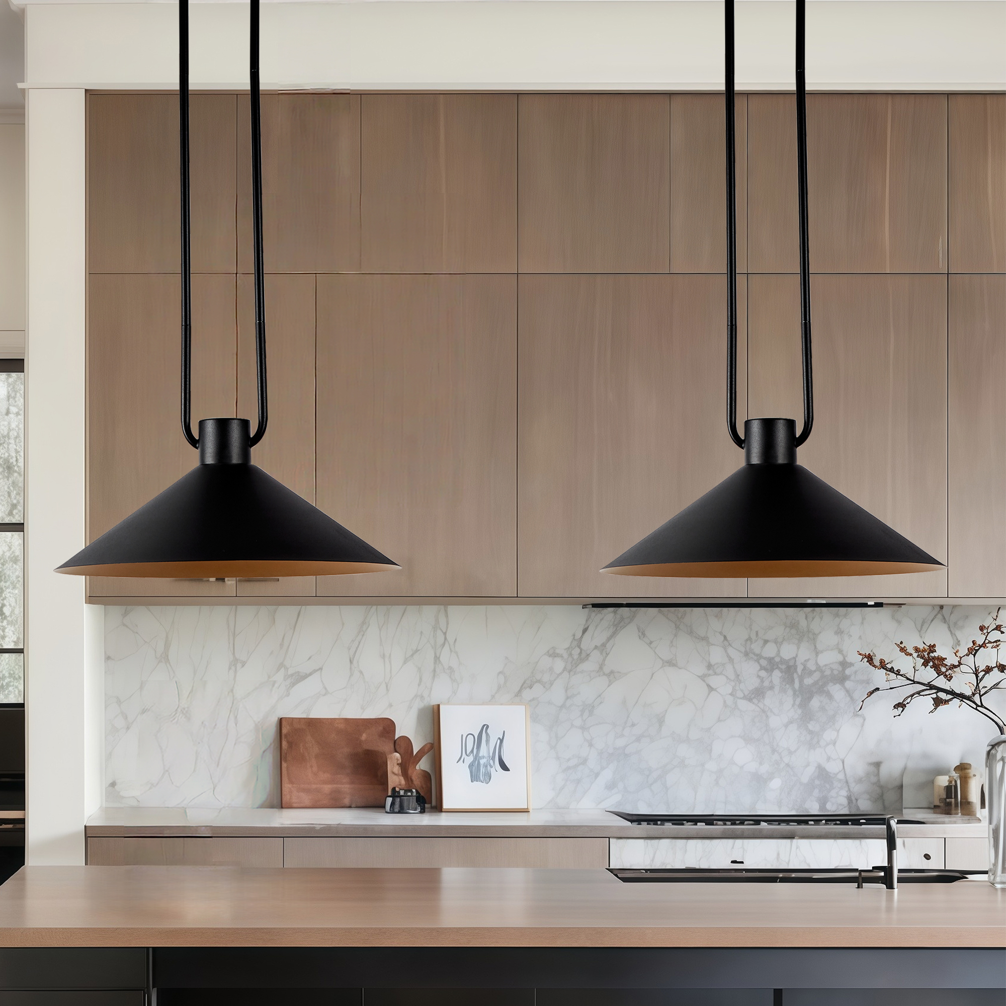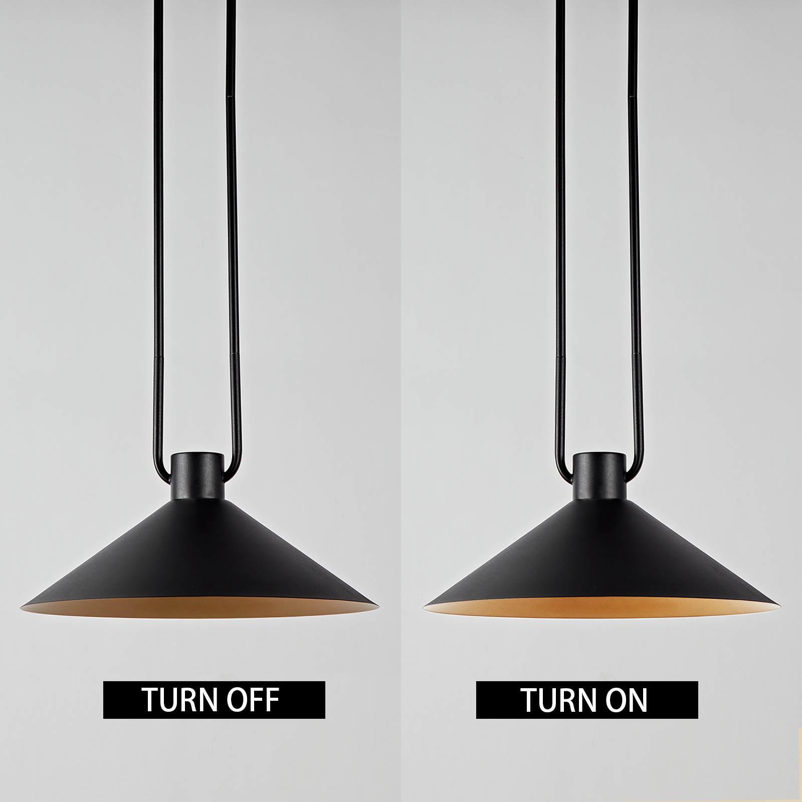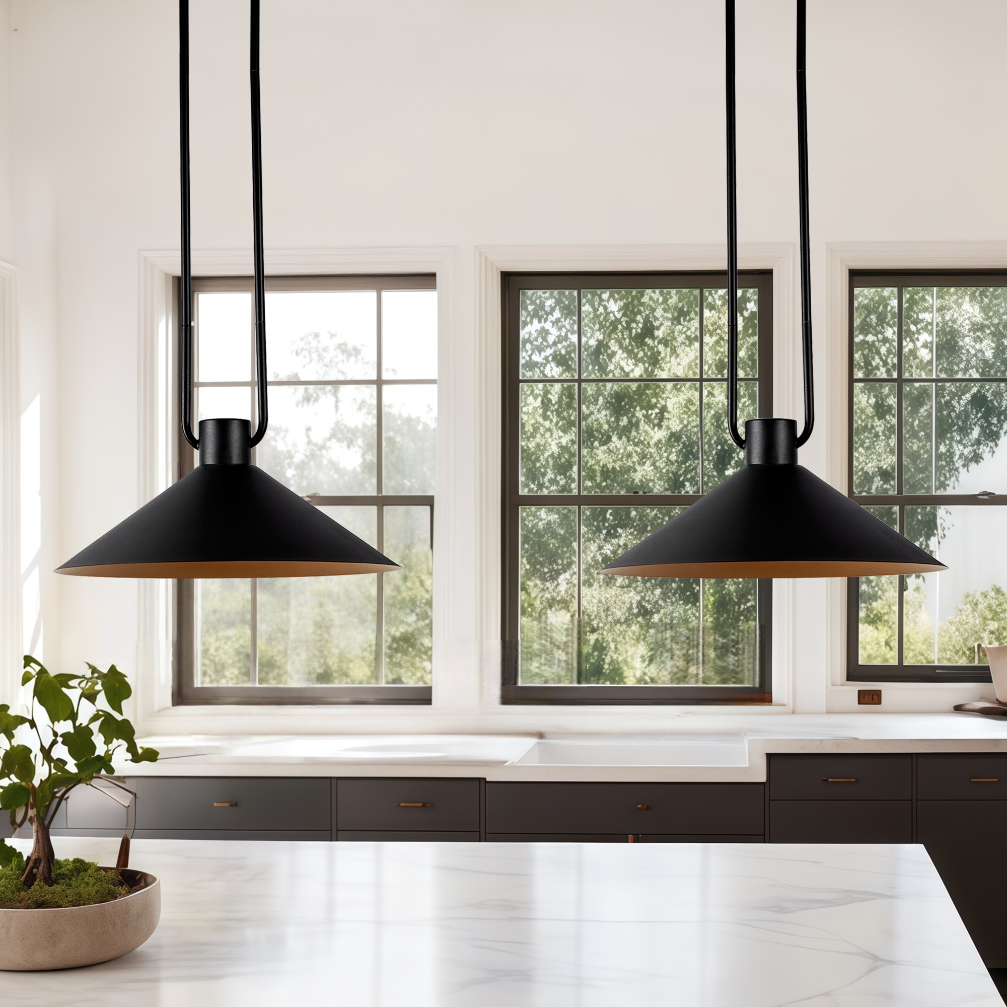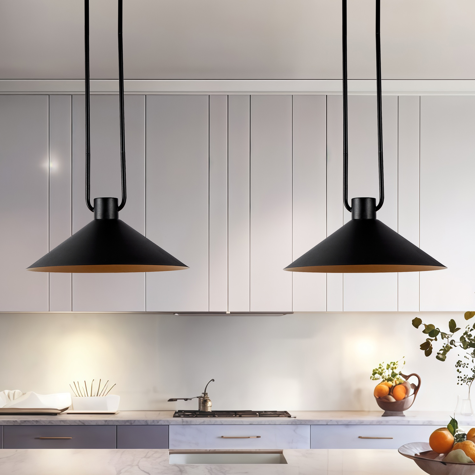 - A loop of slender tubing supports a conical shade that focuses light while providing a soft glow. Hung over a breakfast table or in multiples down a hallway or above a kitchen island, the elegant cone pendant offers an illuminating mix of task and ambient lighting.