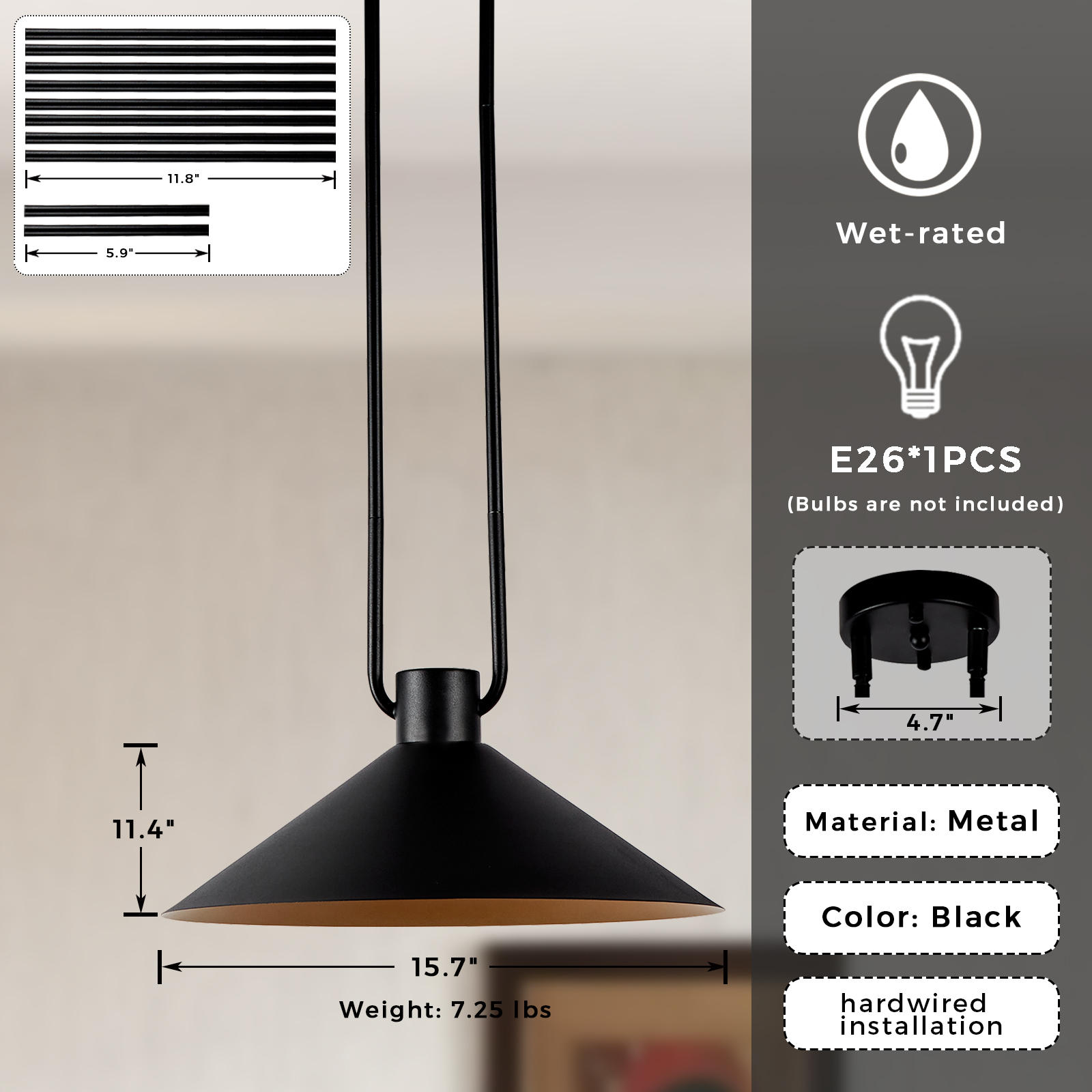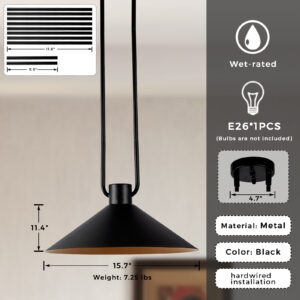 Featuring a metal shade and body, this pendant light is hardwired and requires an E26 outlet for convenience. - Add a touch of modern flair to your kitchen, living room, hallway or dining room with this versatile and chic pendant light.