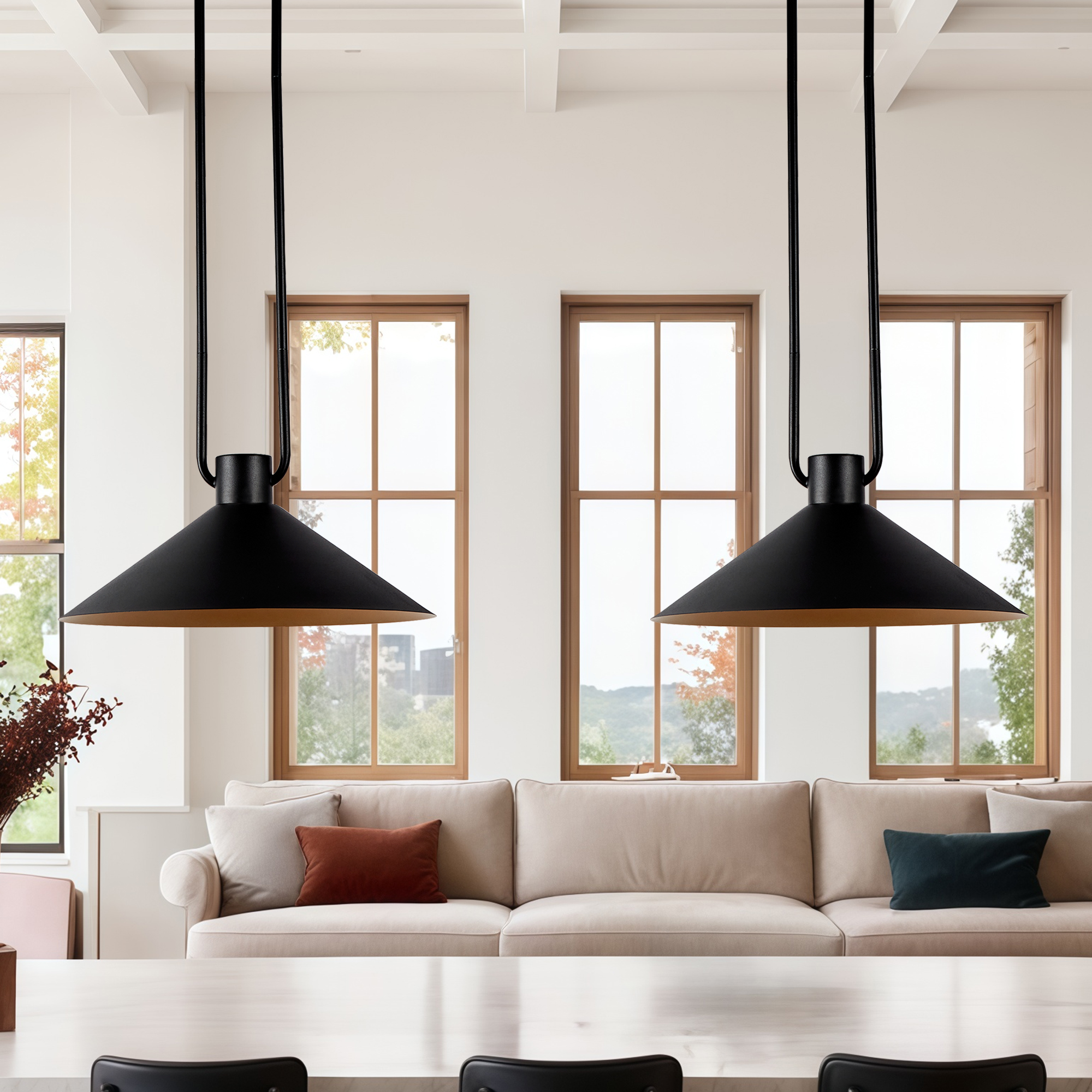- Airy and graceful in matte black/Ivory, our Andre pendant graces your home like a piece of minimalist jewelry.