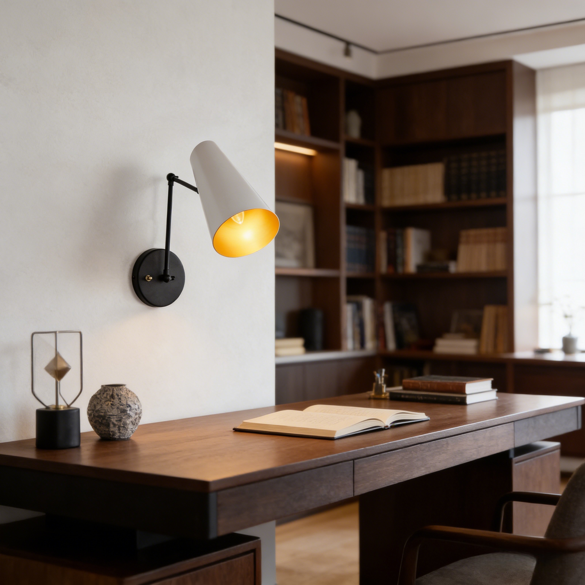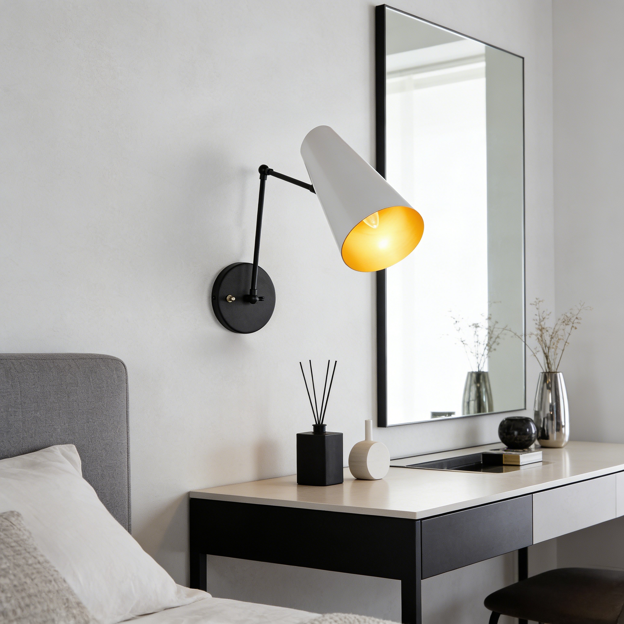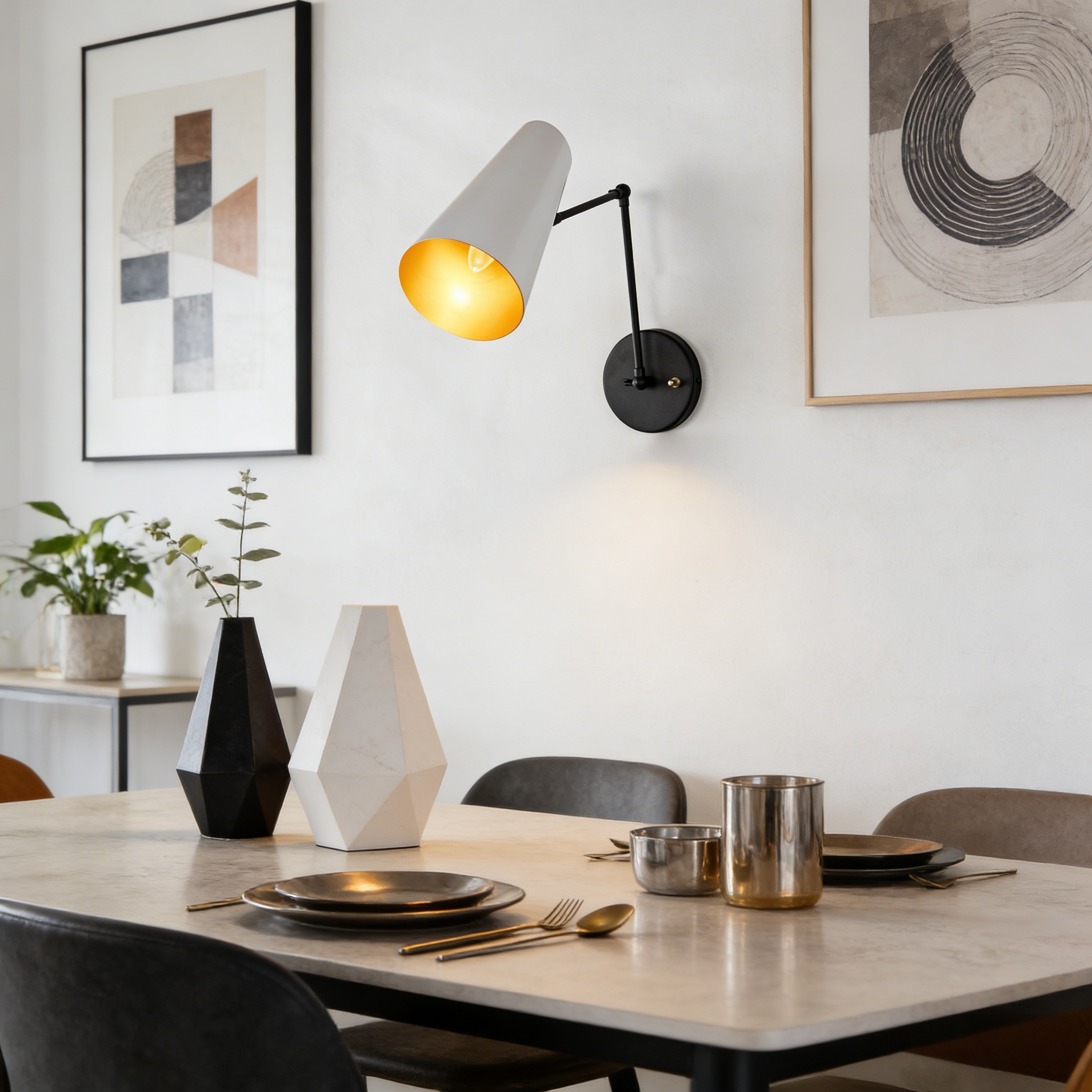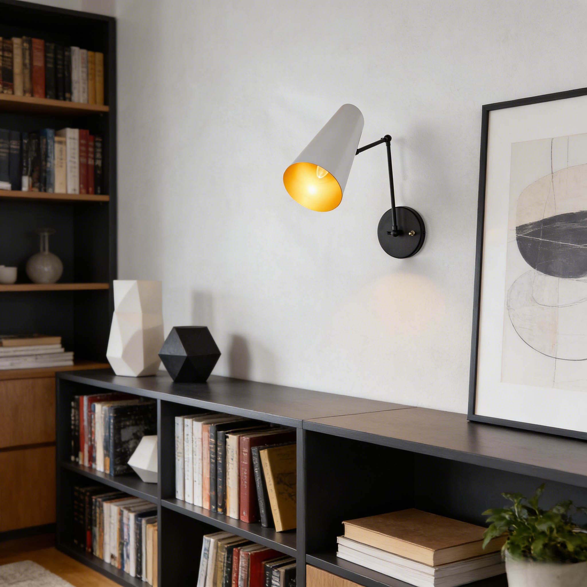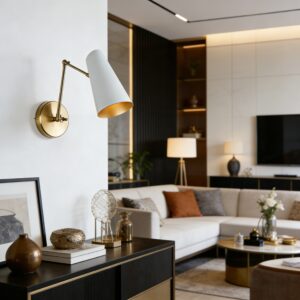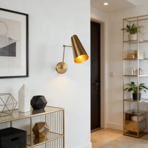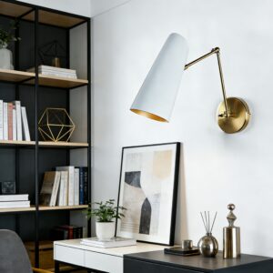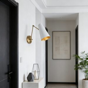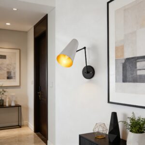 The Mid-Century Modern Metal Double Sconce is a chic and functional lighting solution that brings a touch of mid-century modern charm to your living space. Inspired by mid-century styles, this sleek fixture features two adjustable articulating shades to direct light as needed.