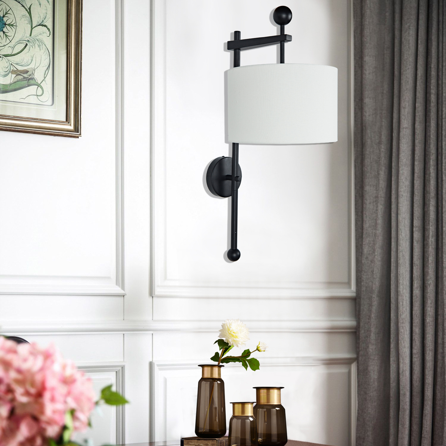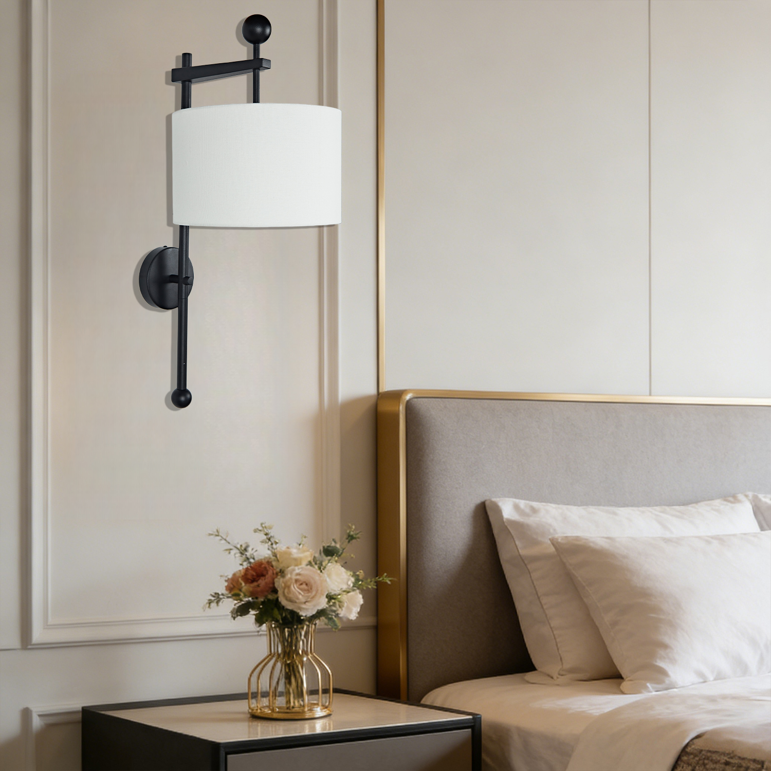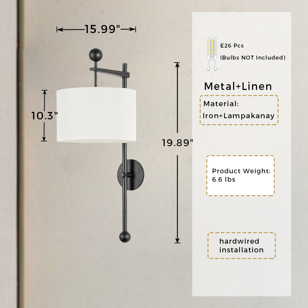 Mid-Centry Modern Wall Sconce with Linen Shade