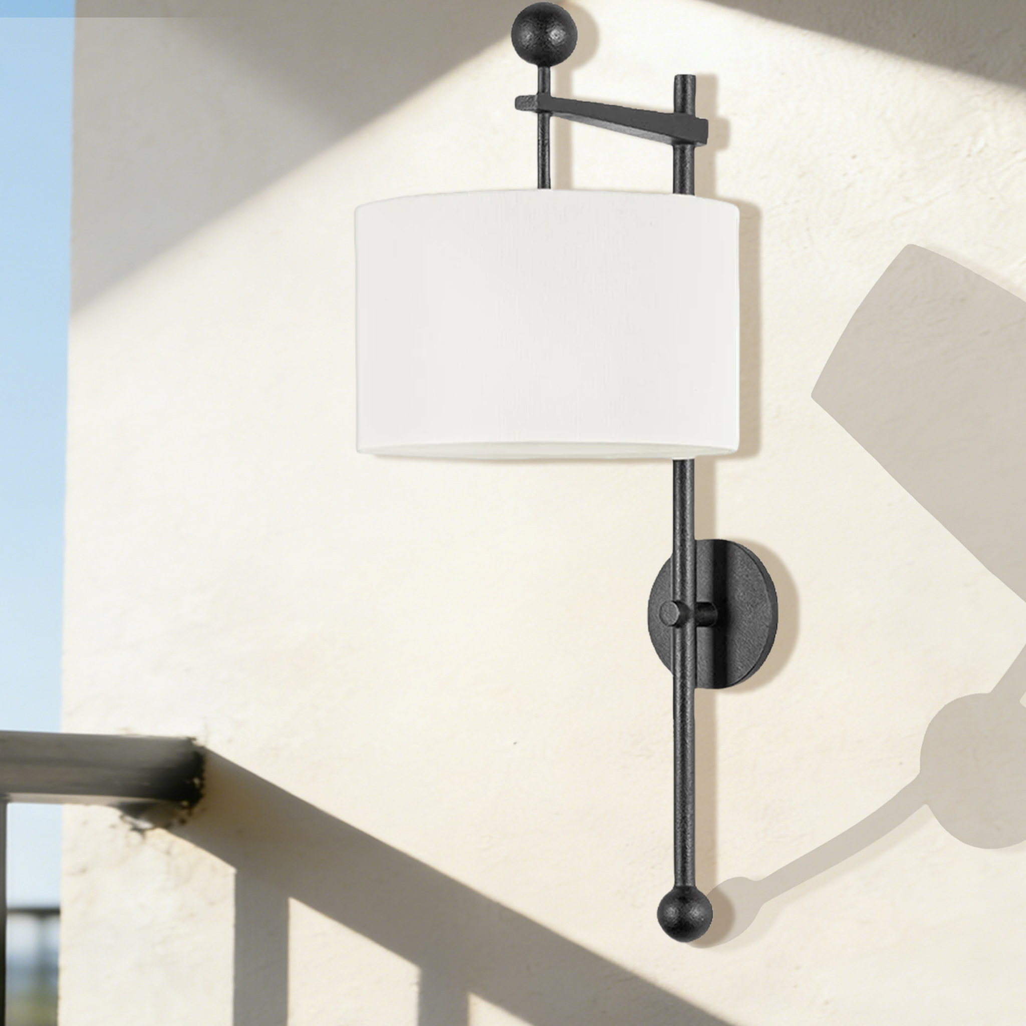 With an off-white shade to complement the detailed structure, the Tisbury Sconce brings modern refinement to your decor. The forged iron and steel body adds character to lighting designs.