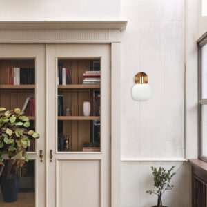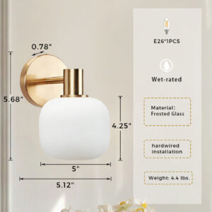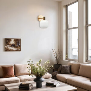 - Colombe Burnished Brass and Glass Single Light Wall Sconce 5.68″Hheight5.12″dia.diameterMeasurements are in inches.