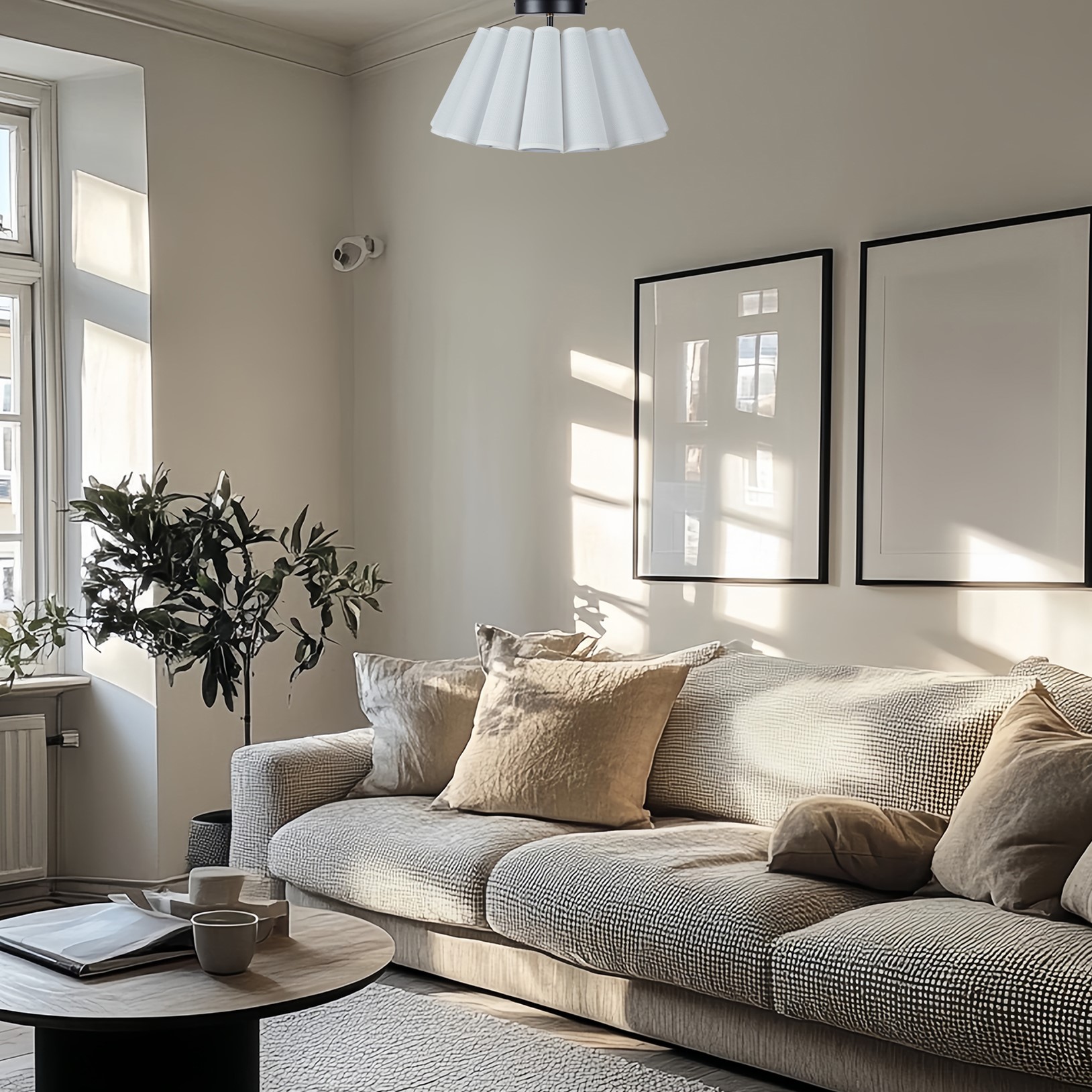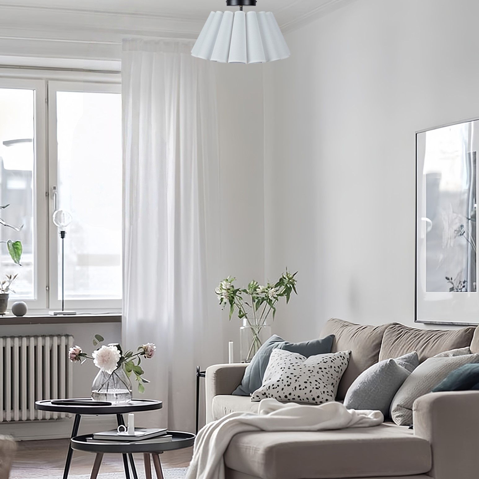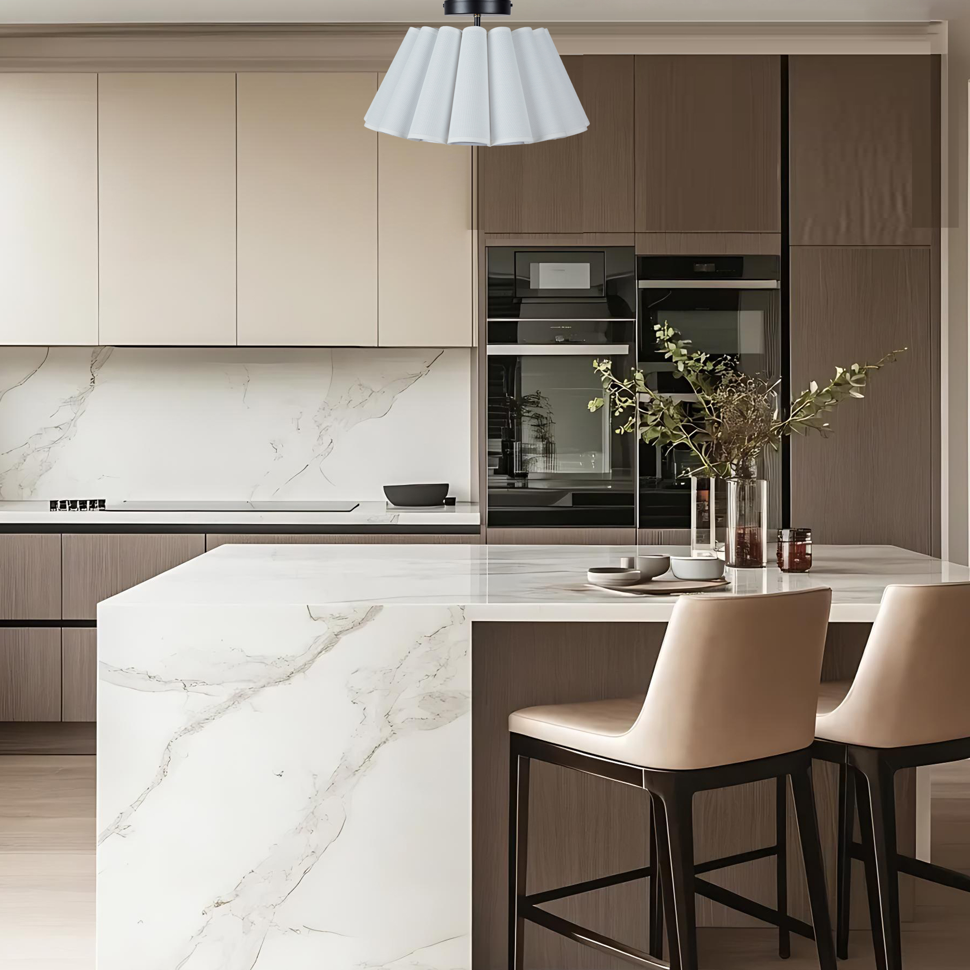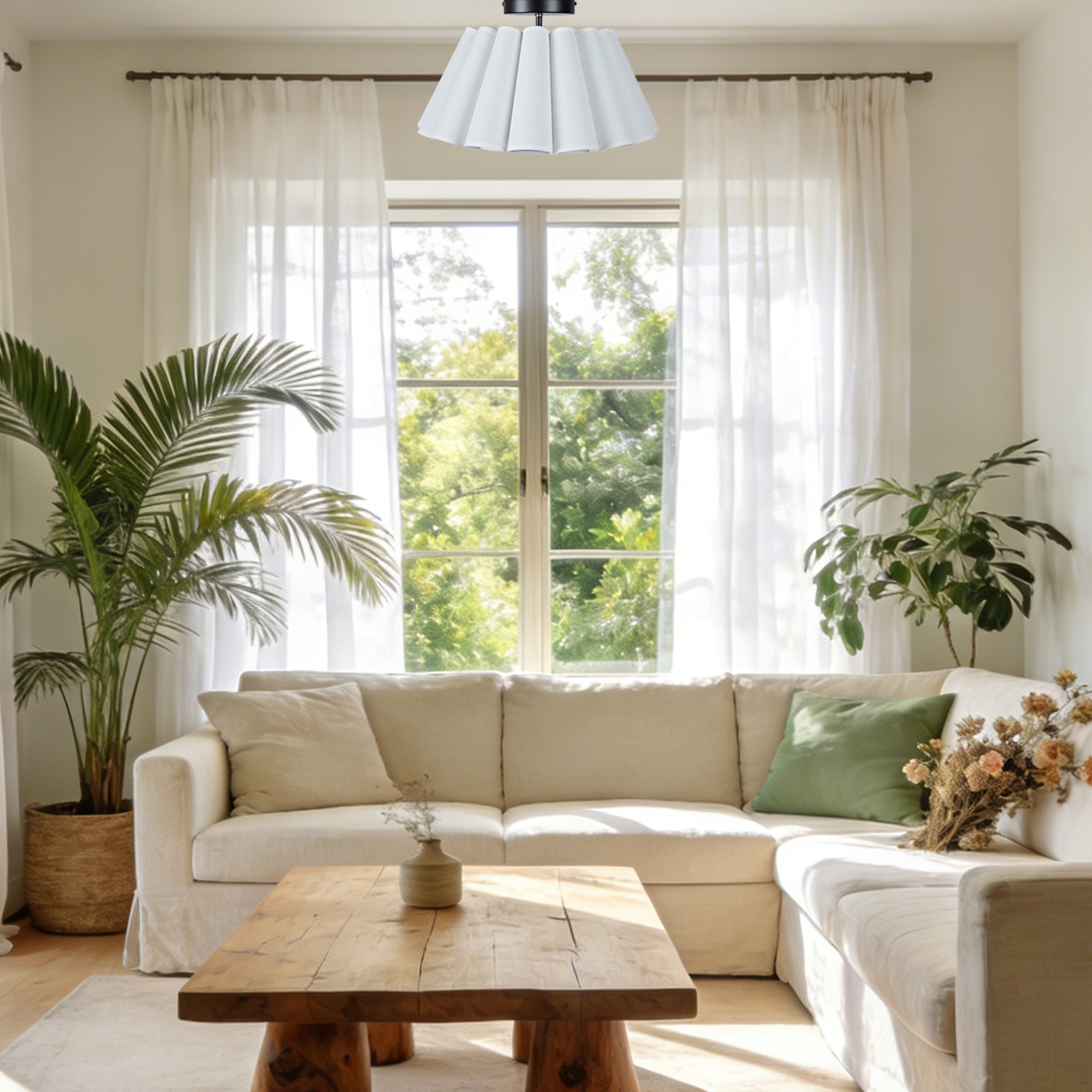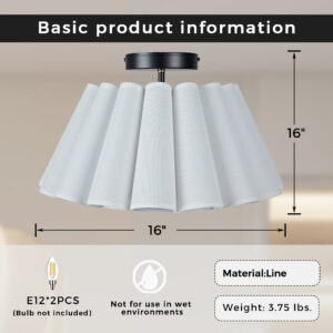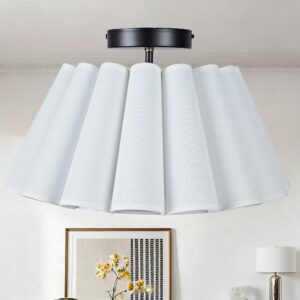 - Elevate the ambiance of your living space with our enchanting Modern White Linen Fluted Semi Flush Mount Ceiling Lamp.
